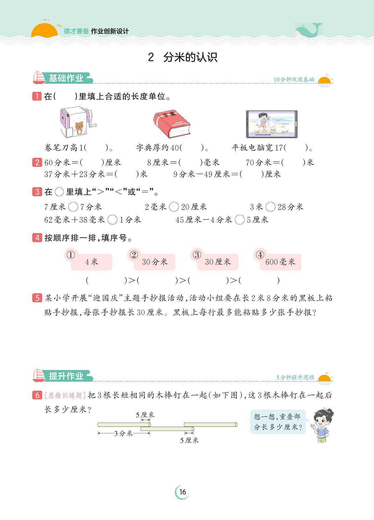 2023上册三年级数学人教版 第三单元 测量——2 分米的认识