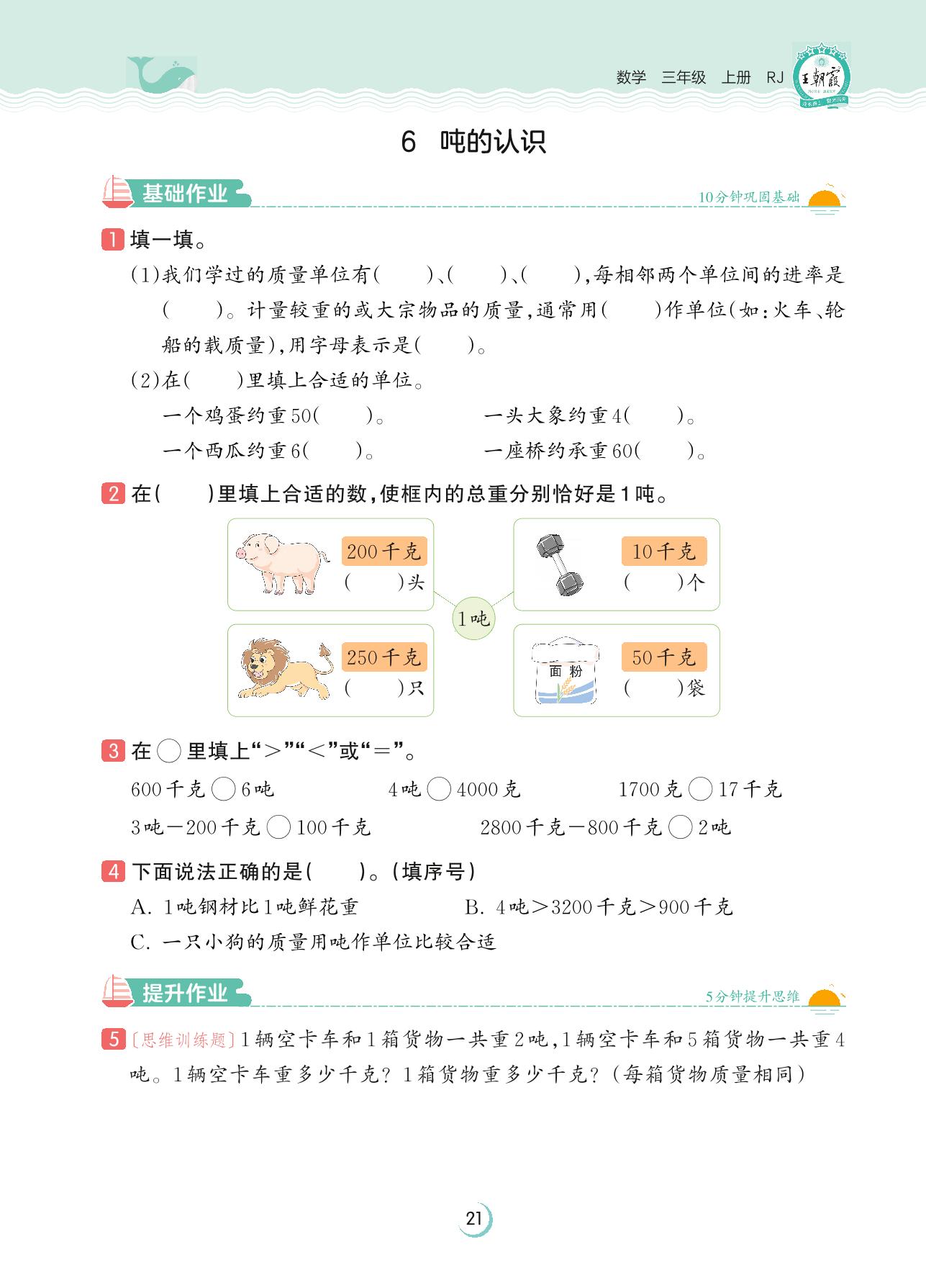 2023上册三年级数学人教版 第三单元 测量——6 吨的认识