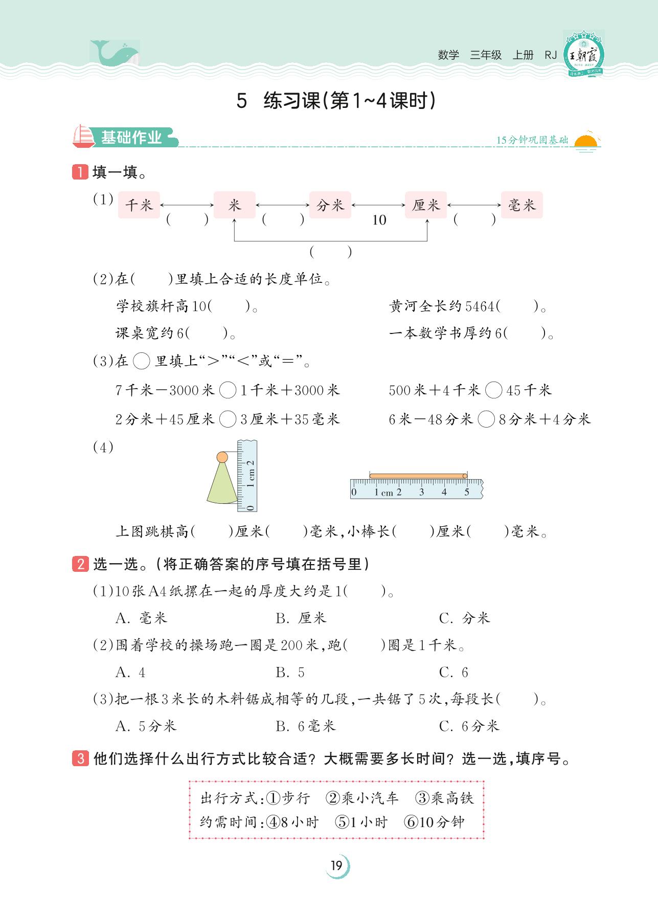2023上册三年级数学人教版 第三单元 测量——5 练习课(第1~4课时)