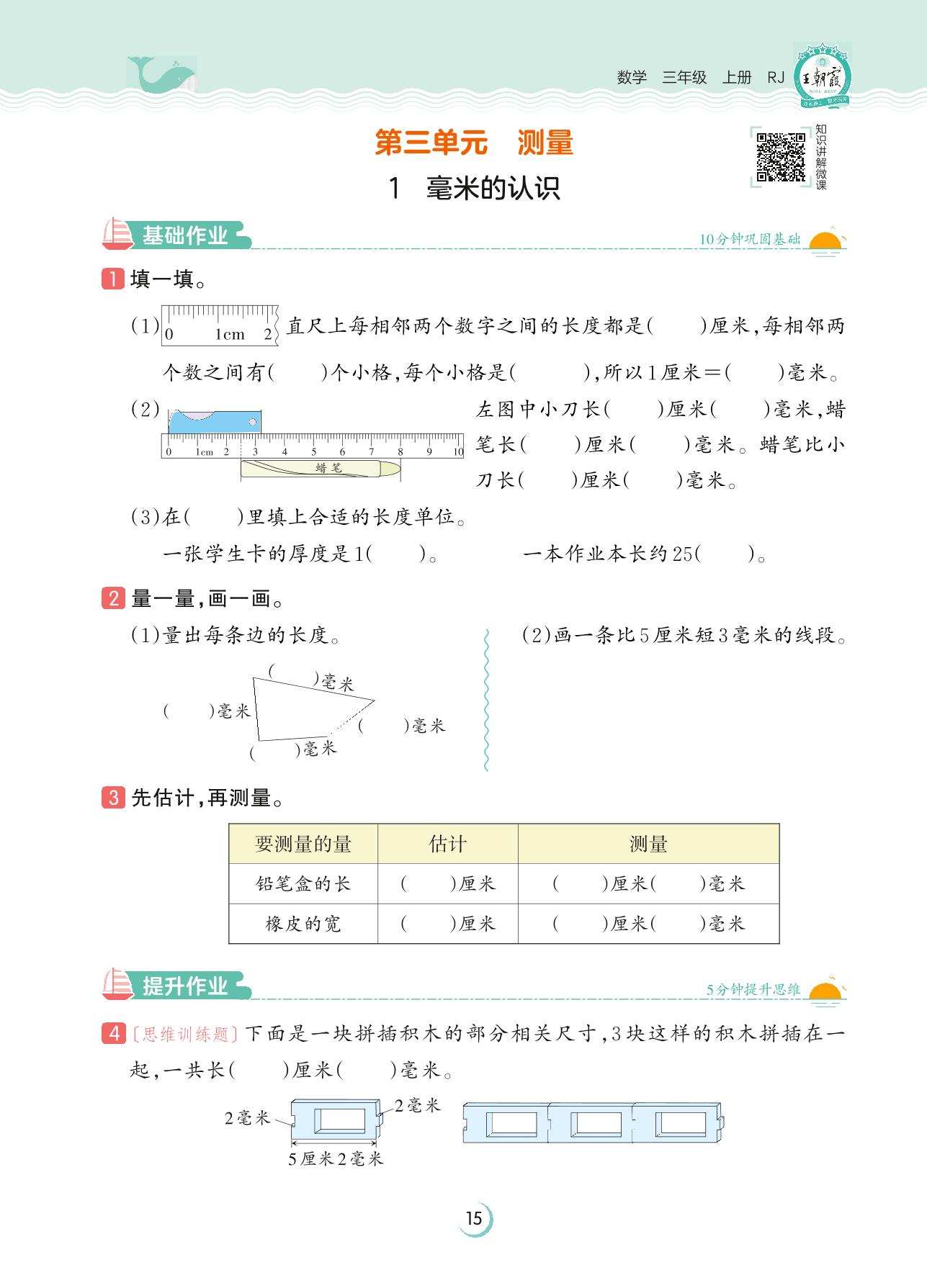 2023上册三年级数学人教版 第三单元 测量——1 毫米的认识