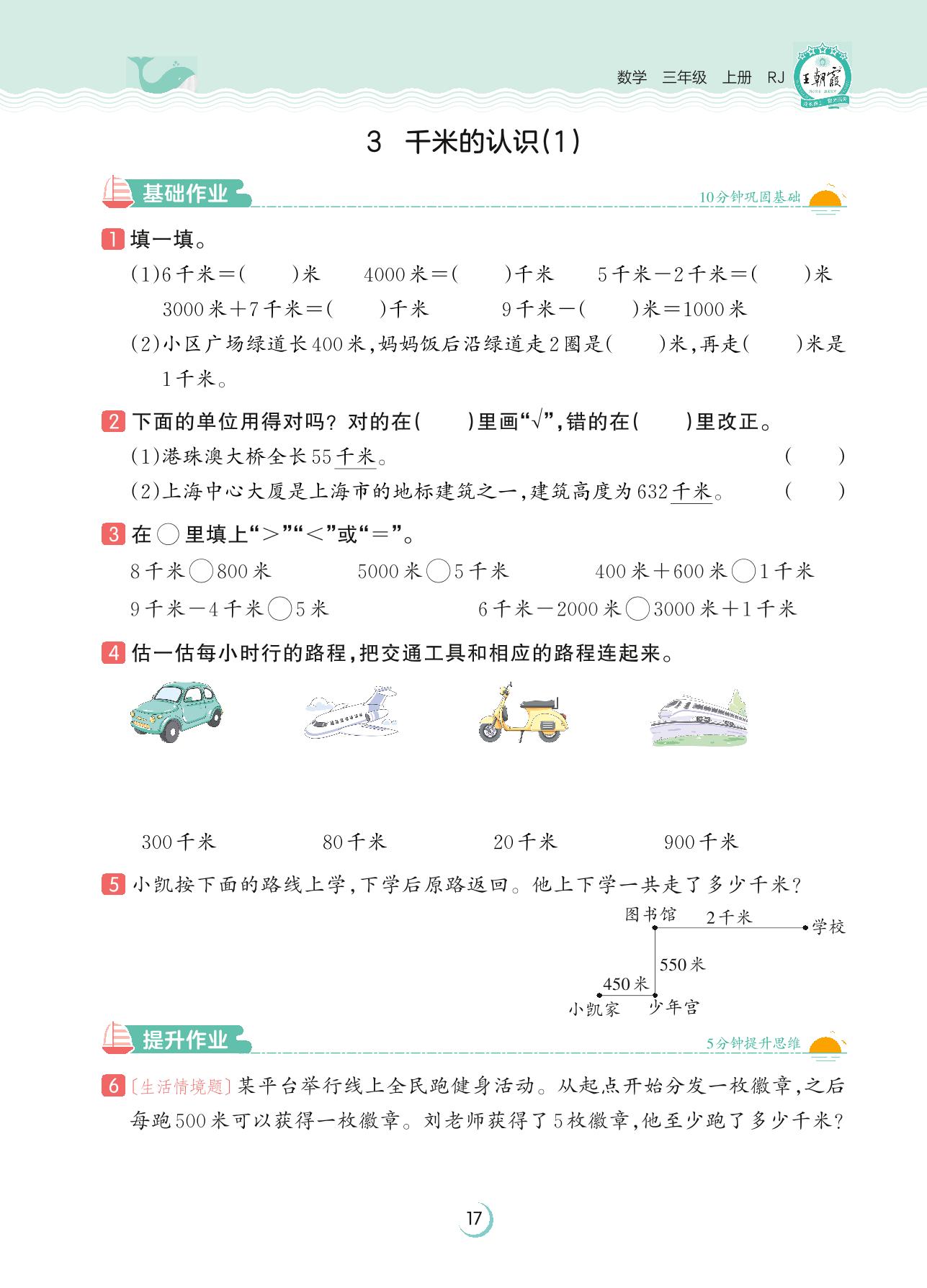 2023上册三年级数学人教版 第三单元 测量——3 千米的认识(1)