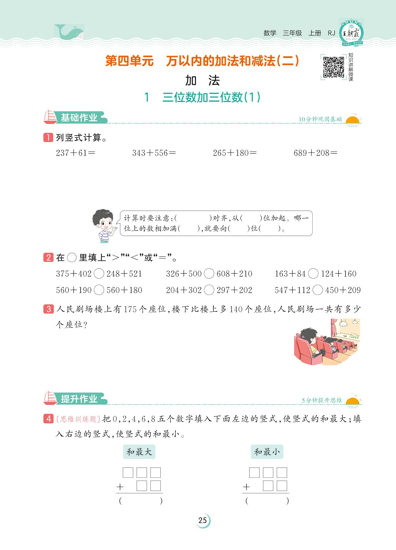 2023上册三年级数学人教版 第四单元 万以内的加法和减法(二)——1 三位数加三位数(1)