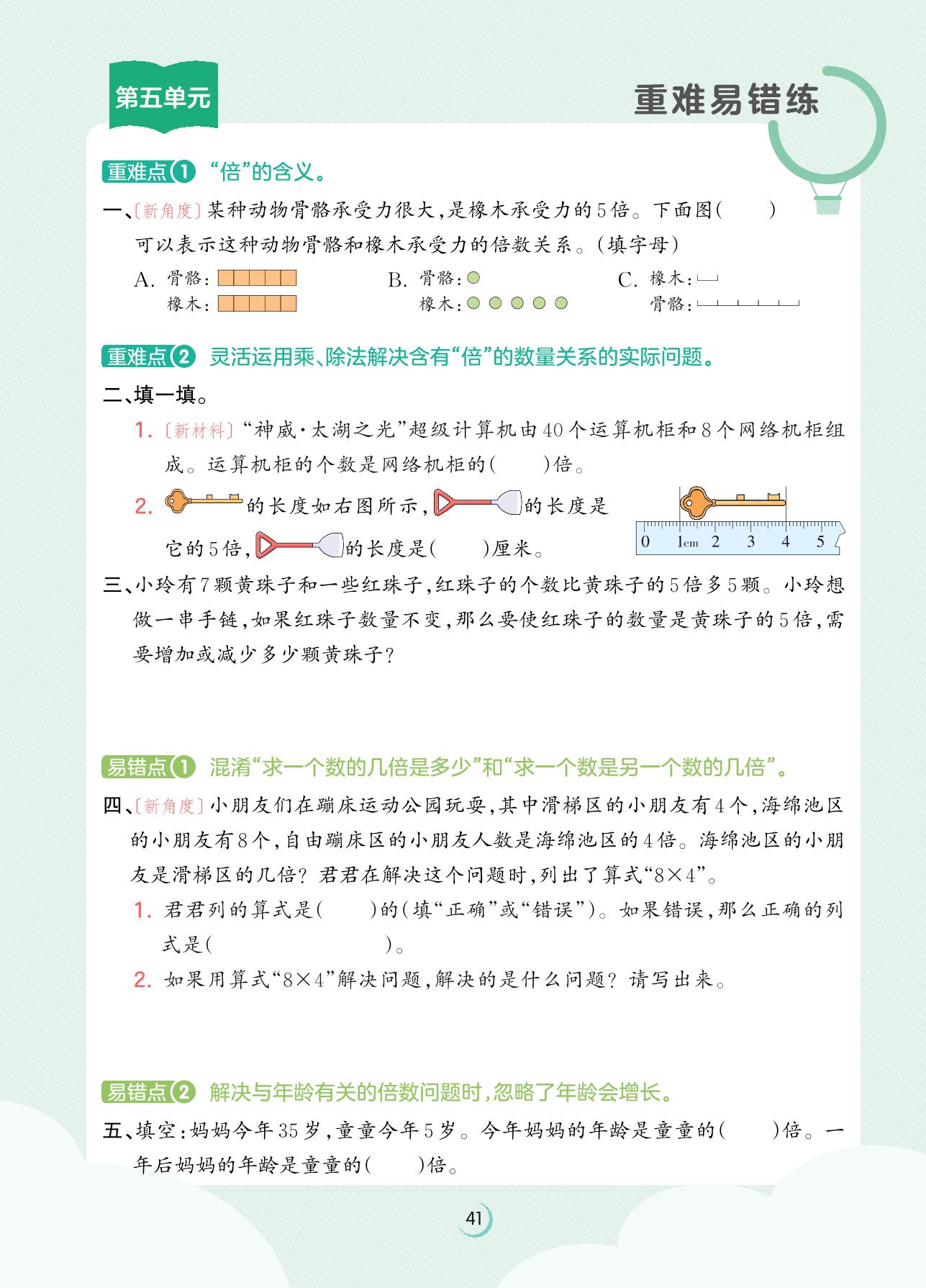 2023上册三年级数学人教版 第五单元重难易错练