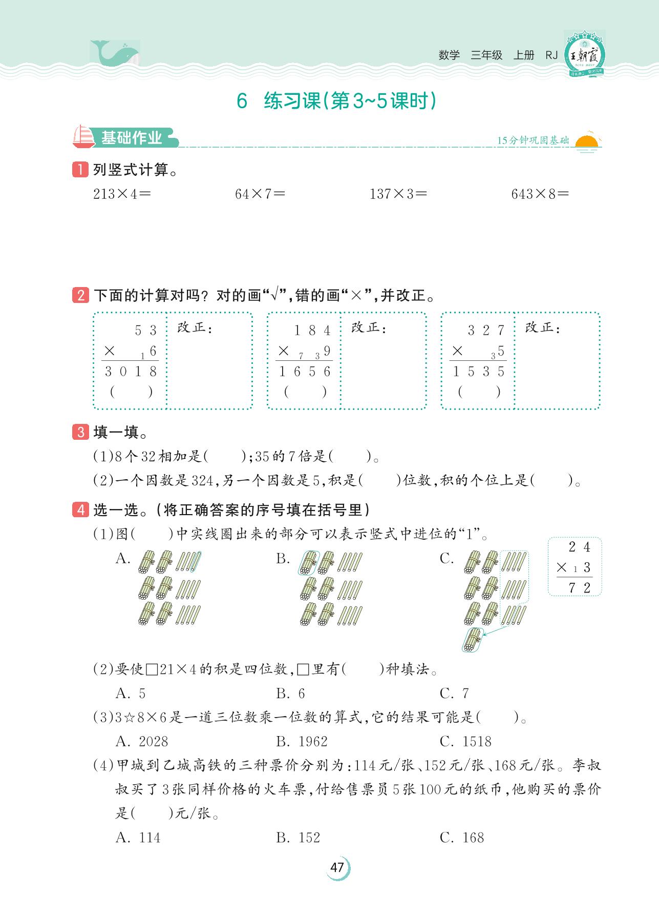 2023上册三年级数学人教版 第六单元 多位数乘一位数——6 练习课(第3~5课时)