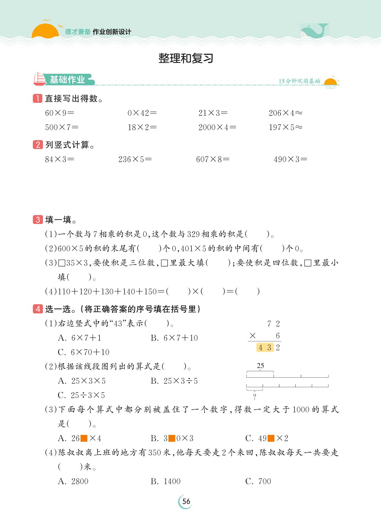 2023上册三年级数学人教版 第六单元 多位数乘一位数——整理和复习
