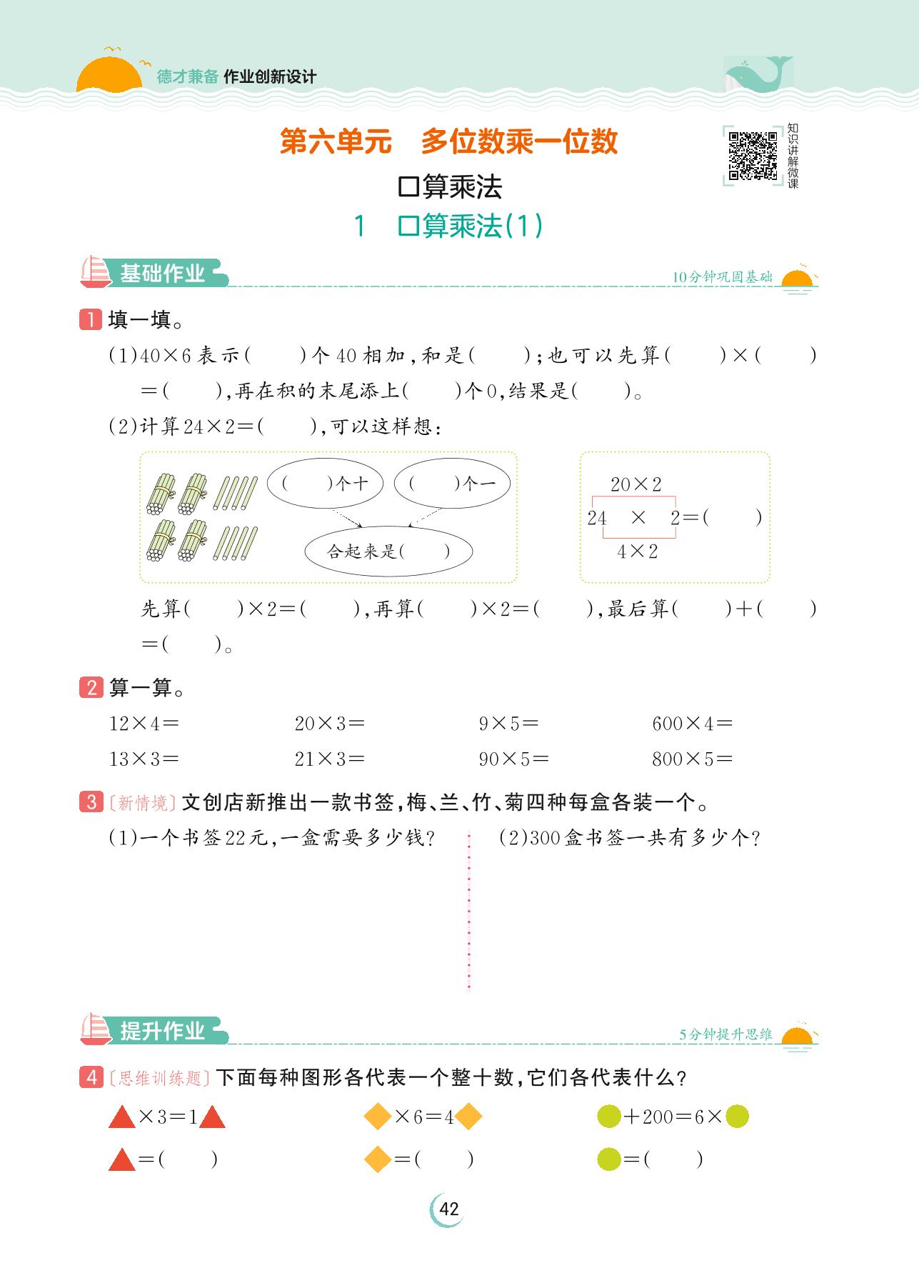 2023上册三年级数学人教版 第六单元 多位数乘一位数——1 口算乘法(1)