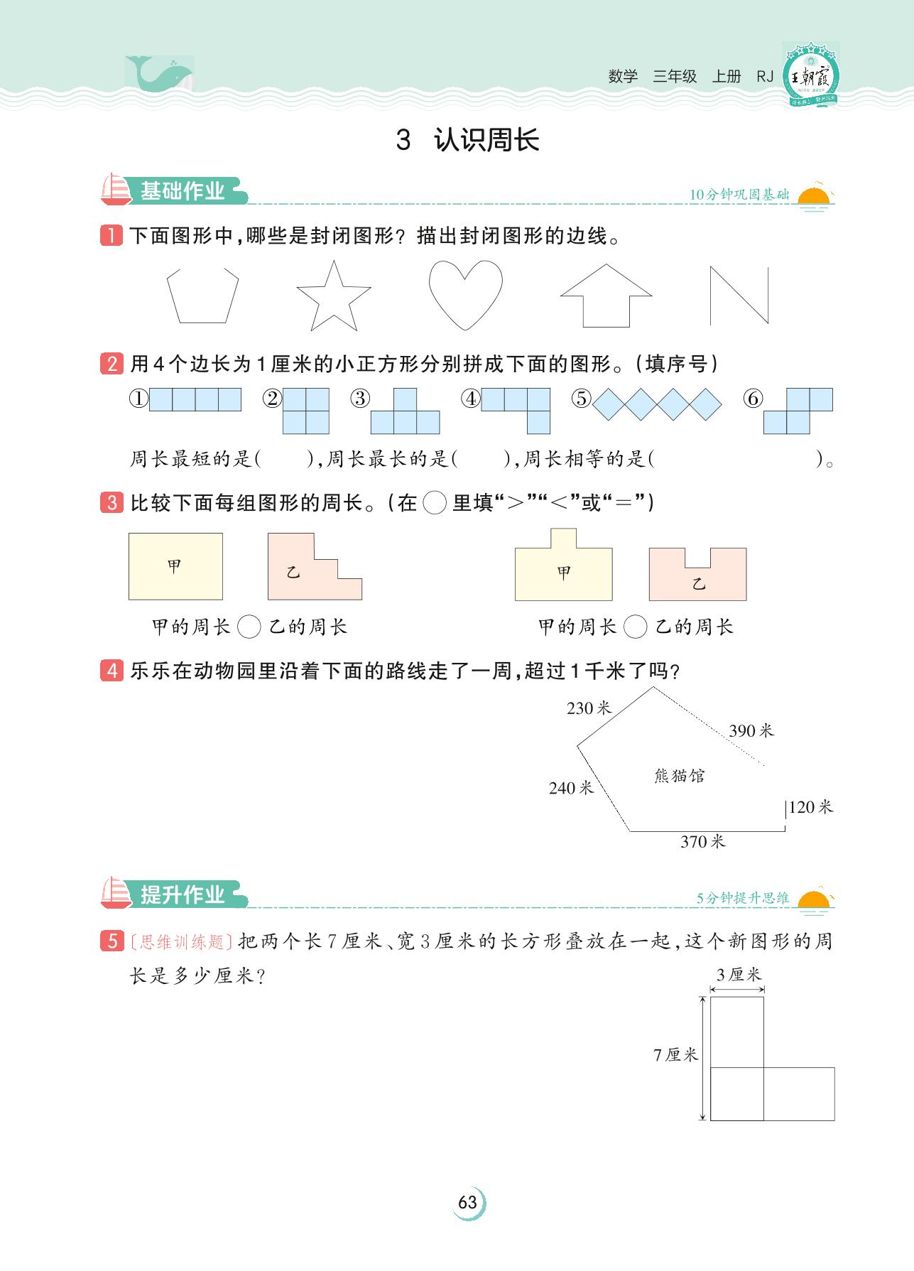 2023上册三年级数学人教版 第七单元 长方形和正方形——3 认识周长