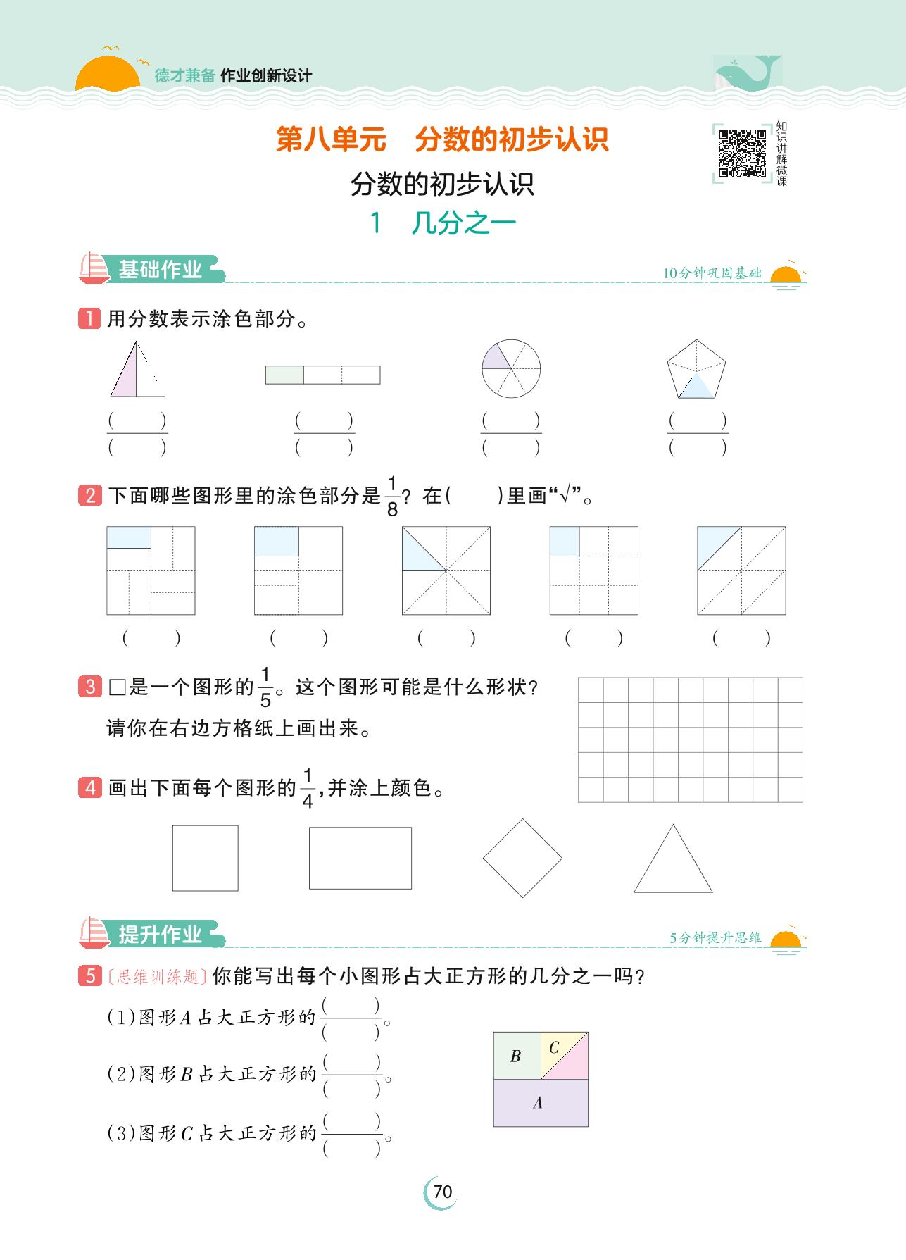 2023上册三年级数学人教版 第八单元 分数的初步认识——1 几分之一