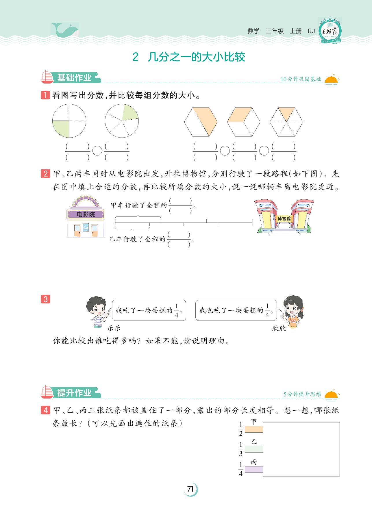 2023上册三年级数学人教版 第八单元 分数的初步认识——2 几分之一的大小比较