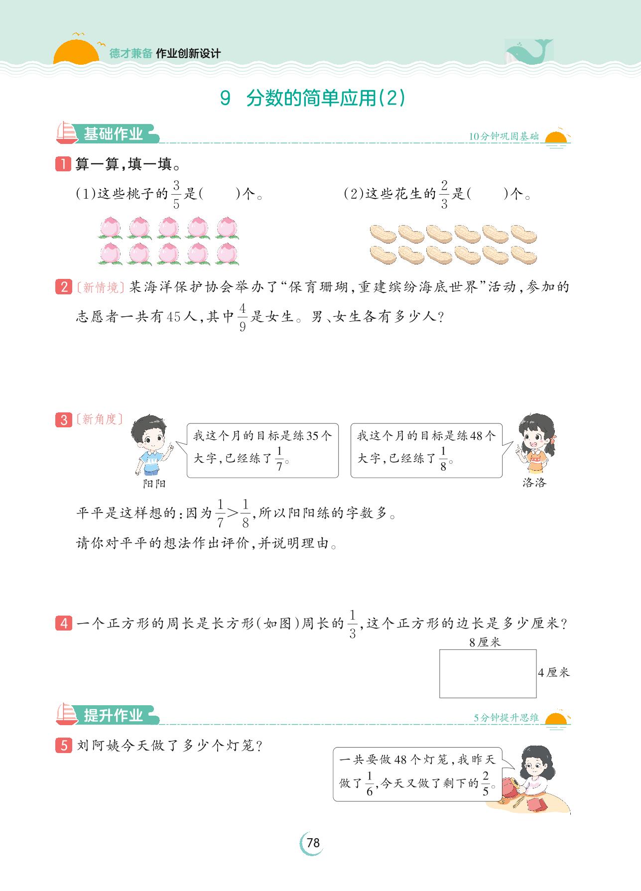 2023上册三年级数学人教版 第八单元 分数的初步认识——9 分数的简单应用(2)