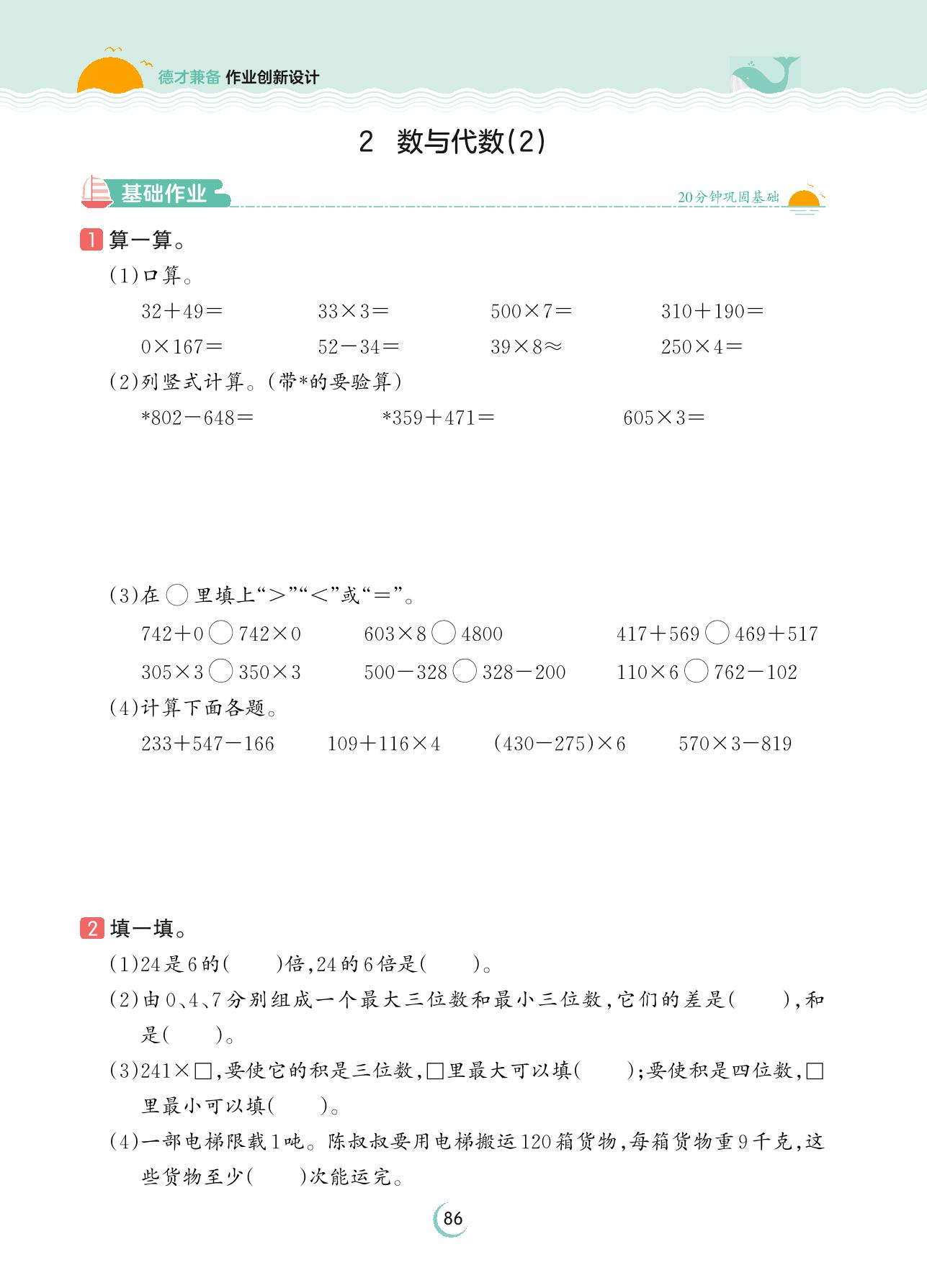 2023上册三年级数学人教版 第十单元 总复习——2 数与代数(2)