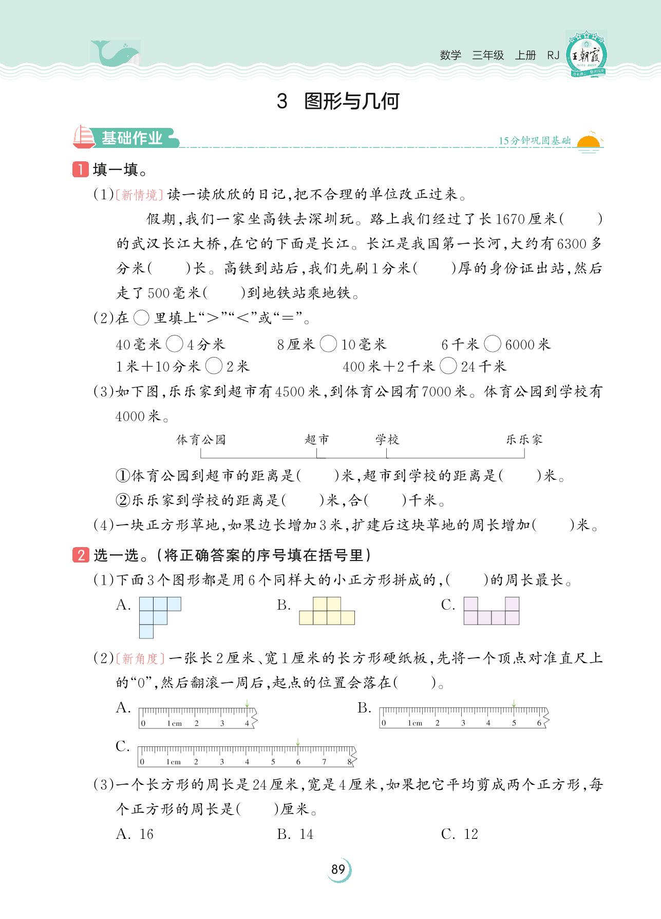 2023上册三年级数学人教版 第十单元 总复习——3 图形与几何