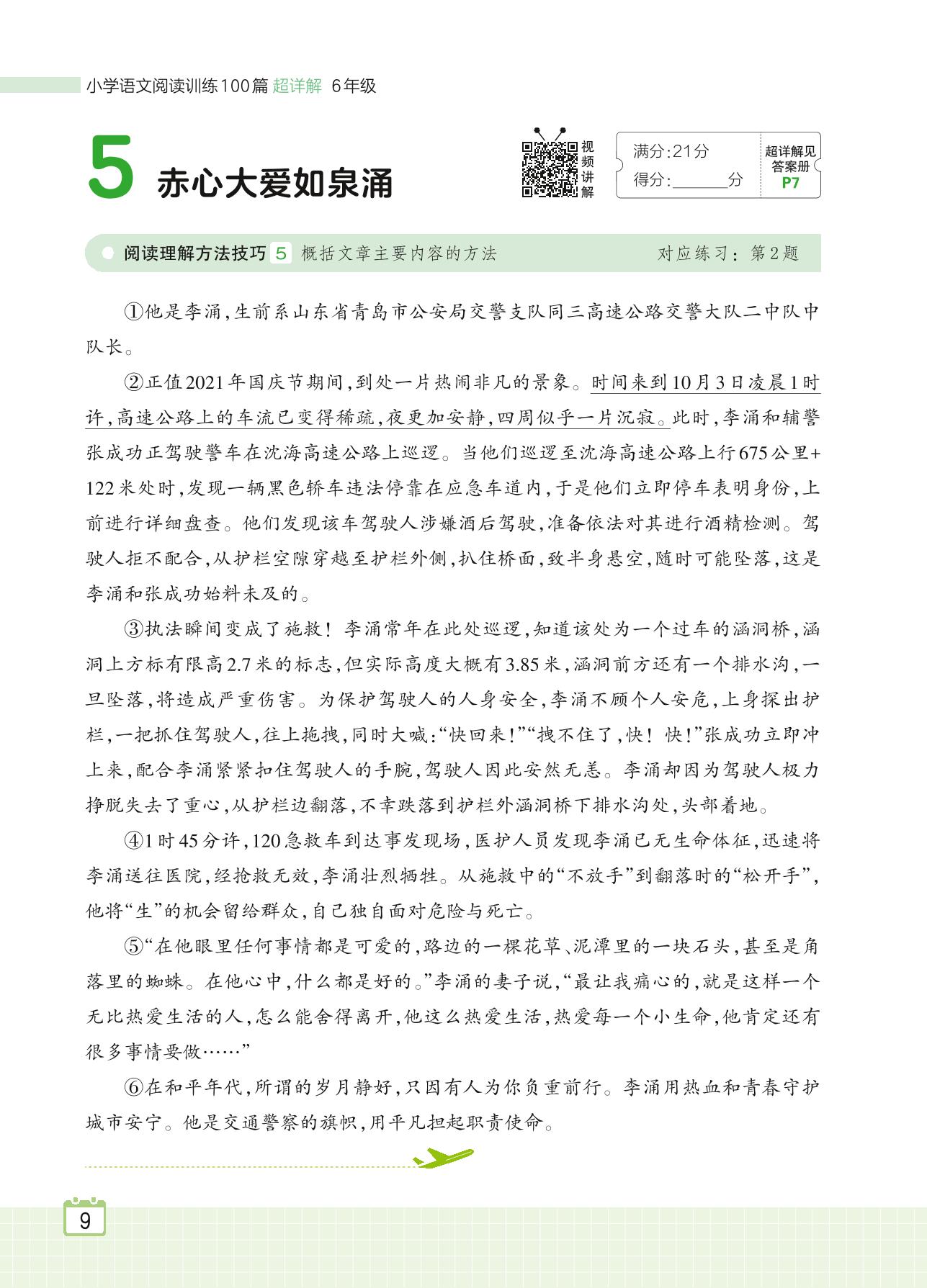 2024全一册六年级语文人教版 专题一 写人 5 赤心大爱如泉涌