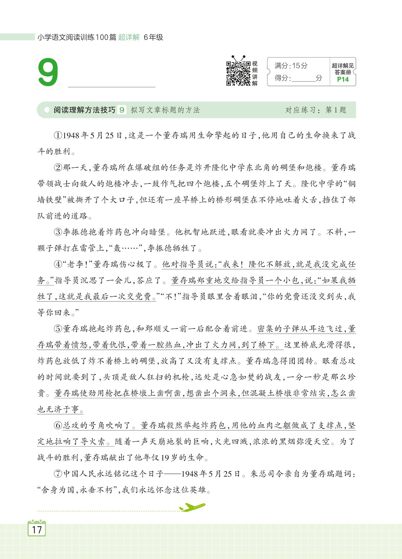 2024全一册六年级语文人教版 专题一 写人 9 ________