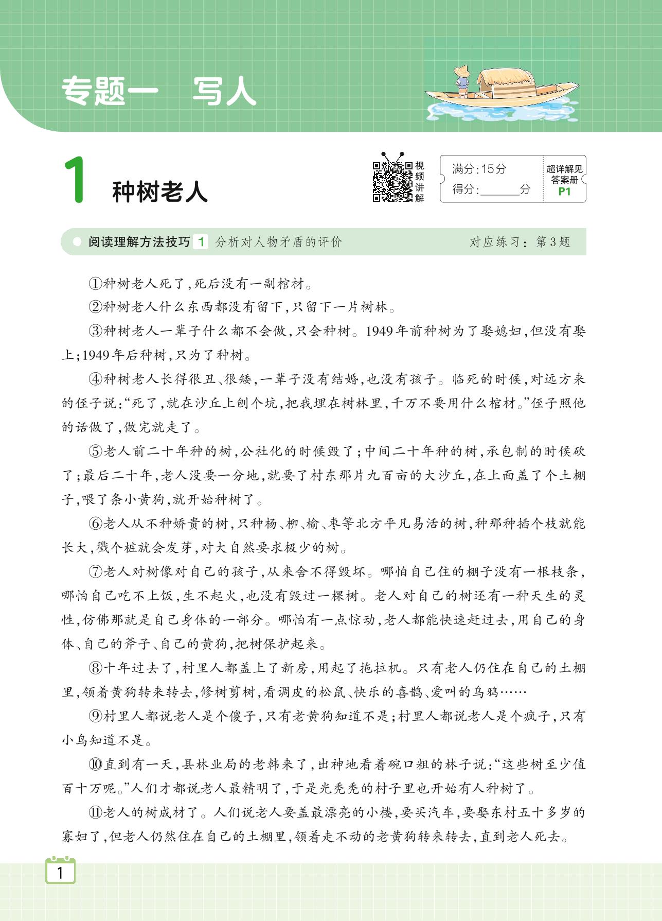 2024全一册六年级语文人教版 专题一 写人 1 种树老人