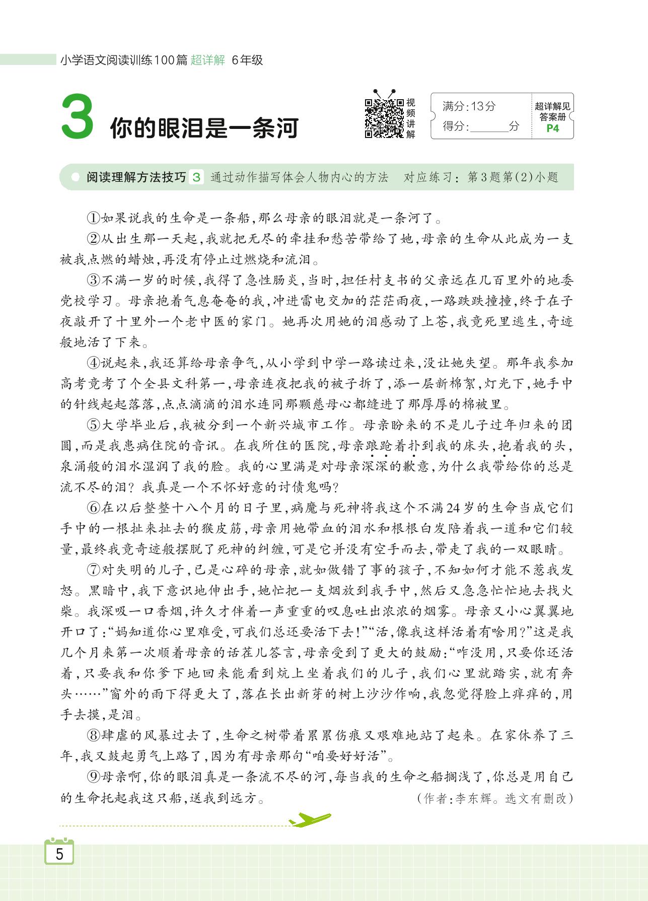 2024全一册六年级语文人教版 专题一 写人 3 你的眼泪是一条河