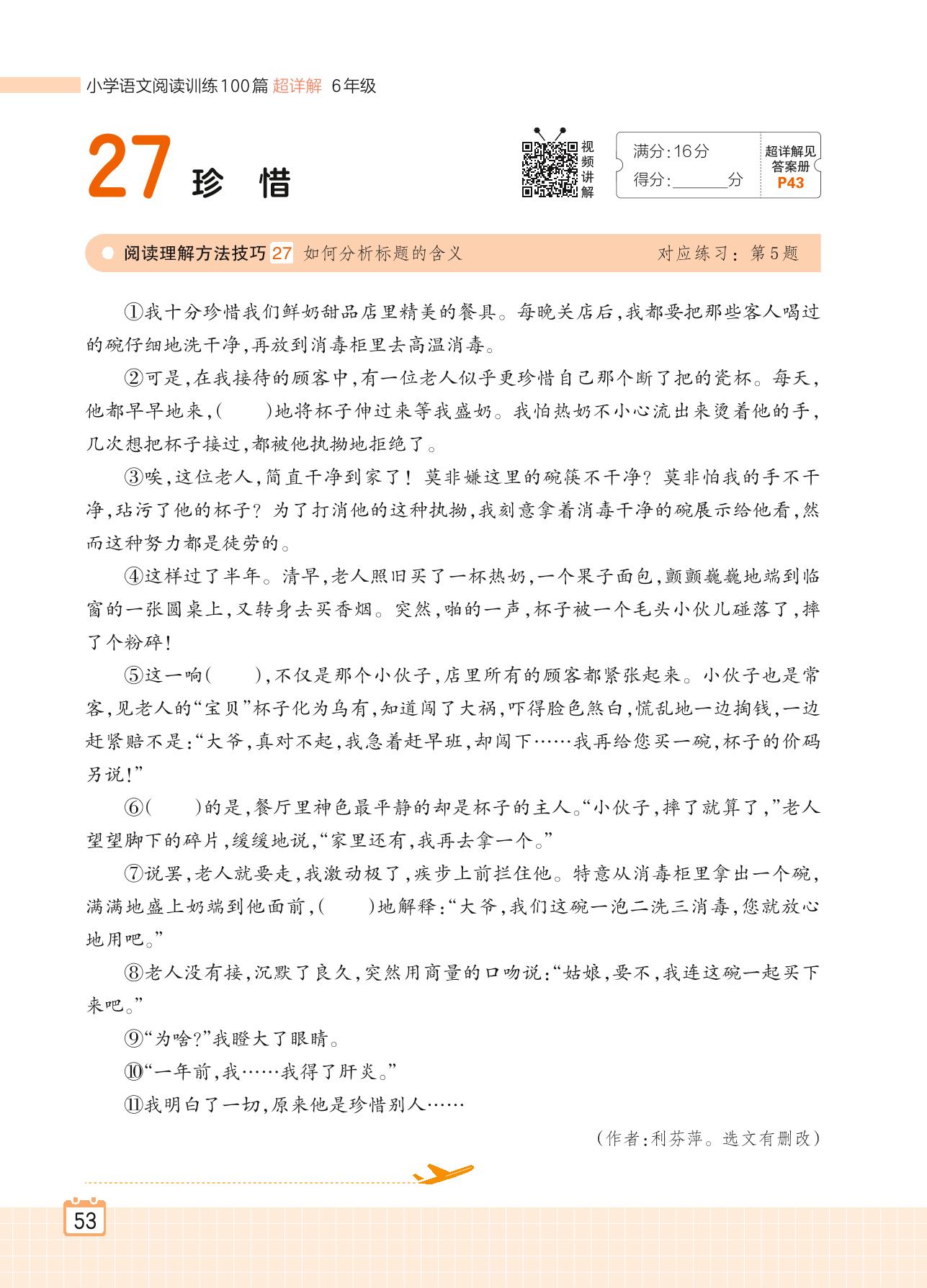 2024全一册六年级语文人教版 专题二 记事 27 珍惜