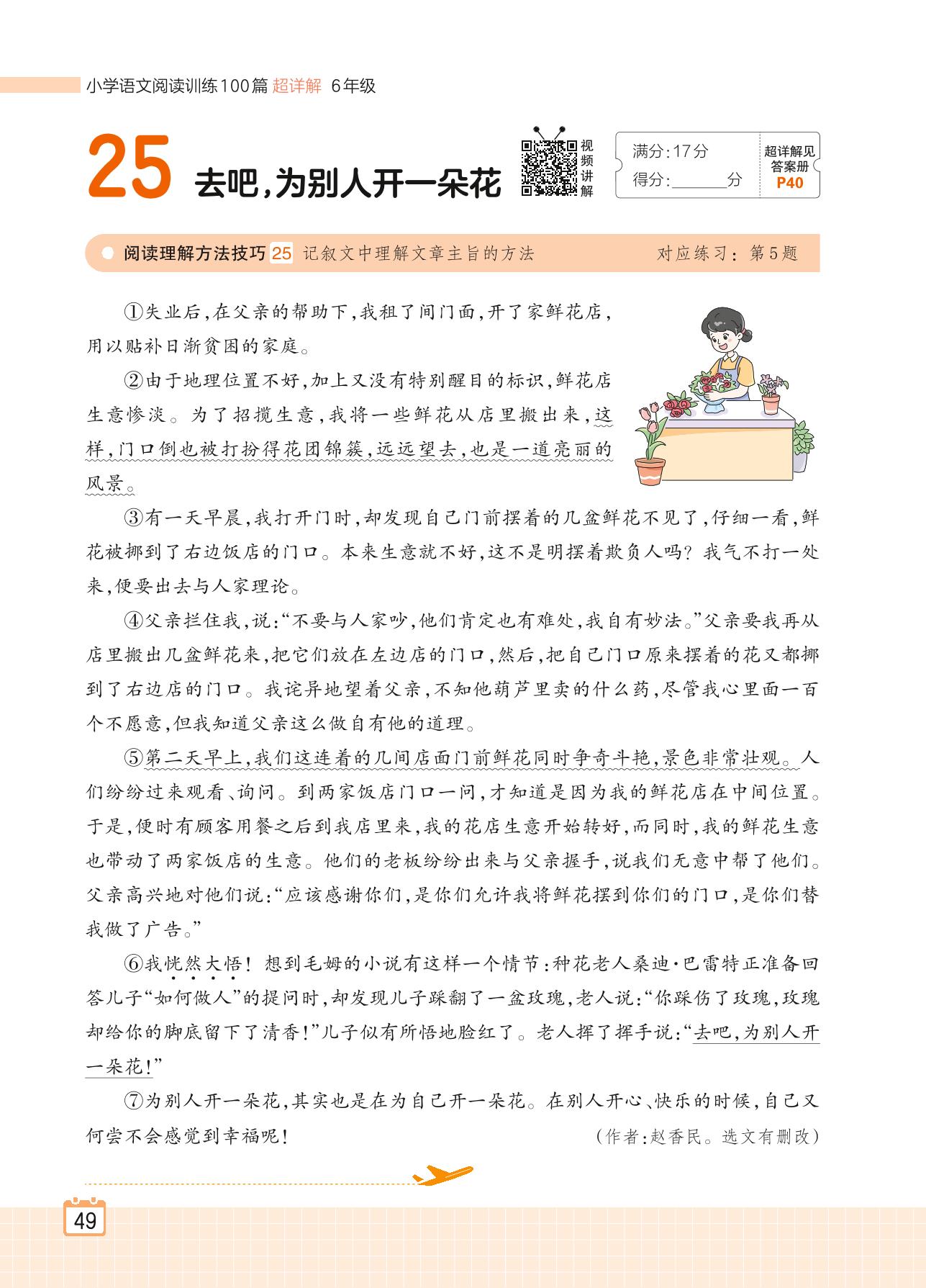 2024全一册六年级语文人教版 专题二 记事 25 去吧,为别人开一朵花