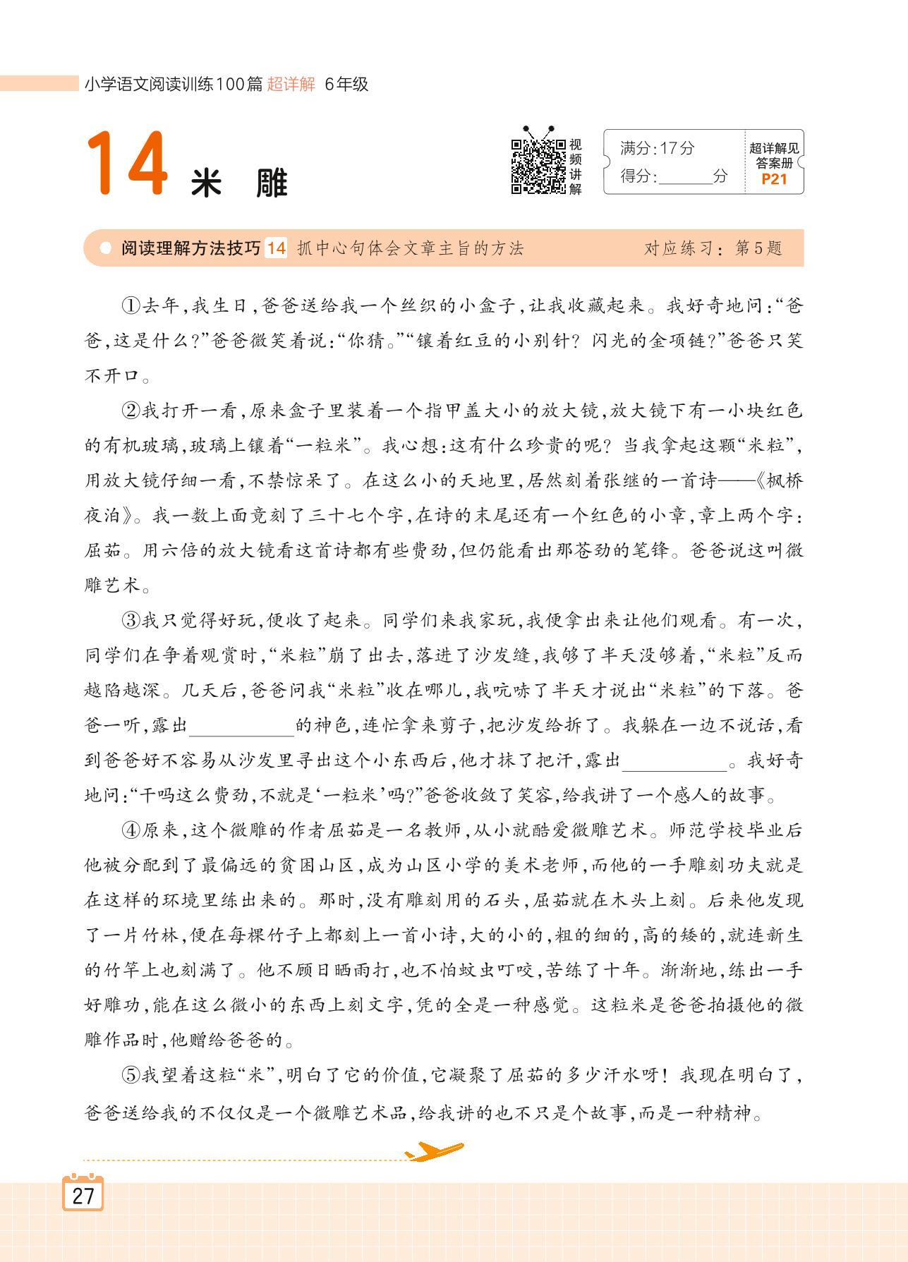 2024全一册六年级语文人教版 专题二 记事 14 米雕