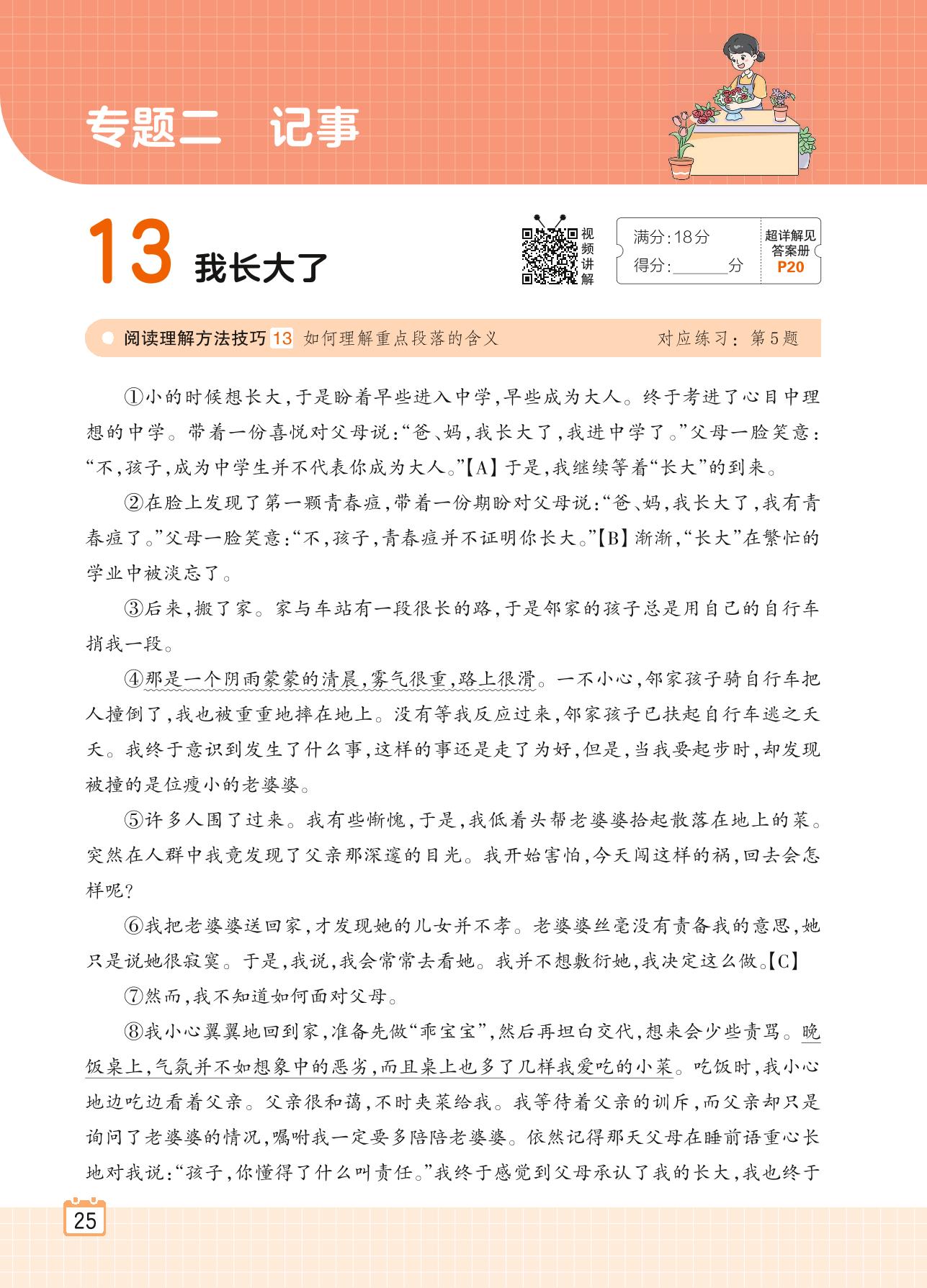 2024全一册六年级语文人教版 专题二 记事 13 我长大了
