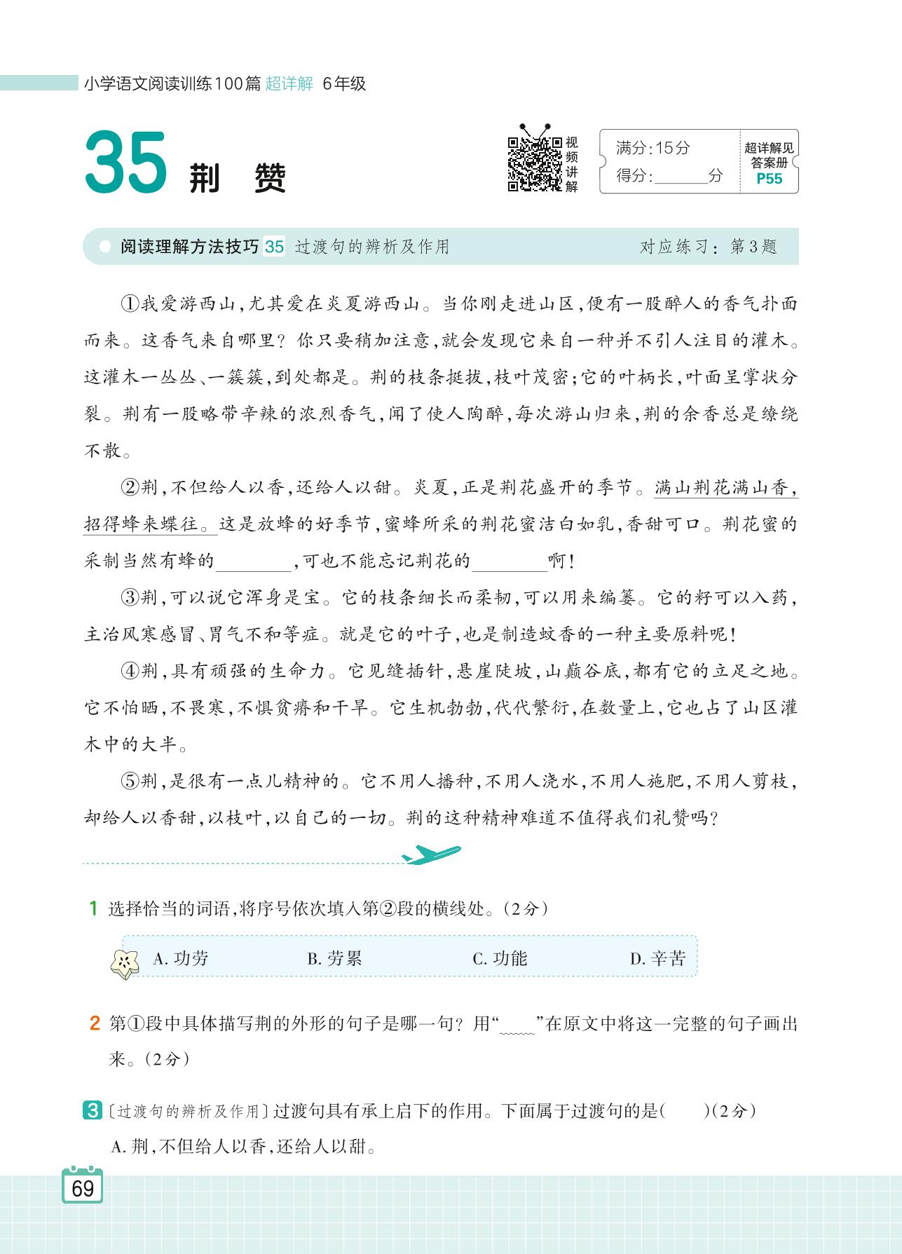 2024全一册六年级语文人教版 专题三 写景状物 35 荆赞