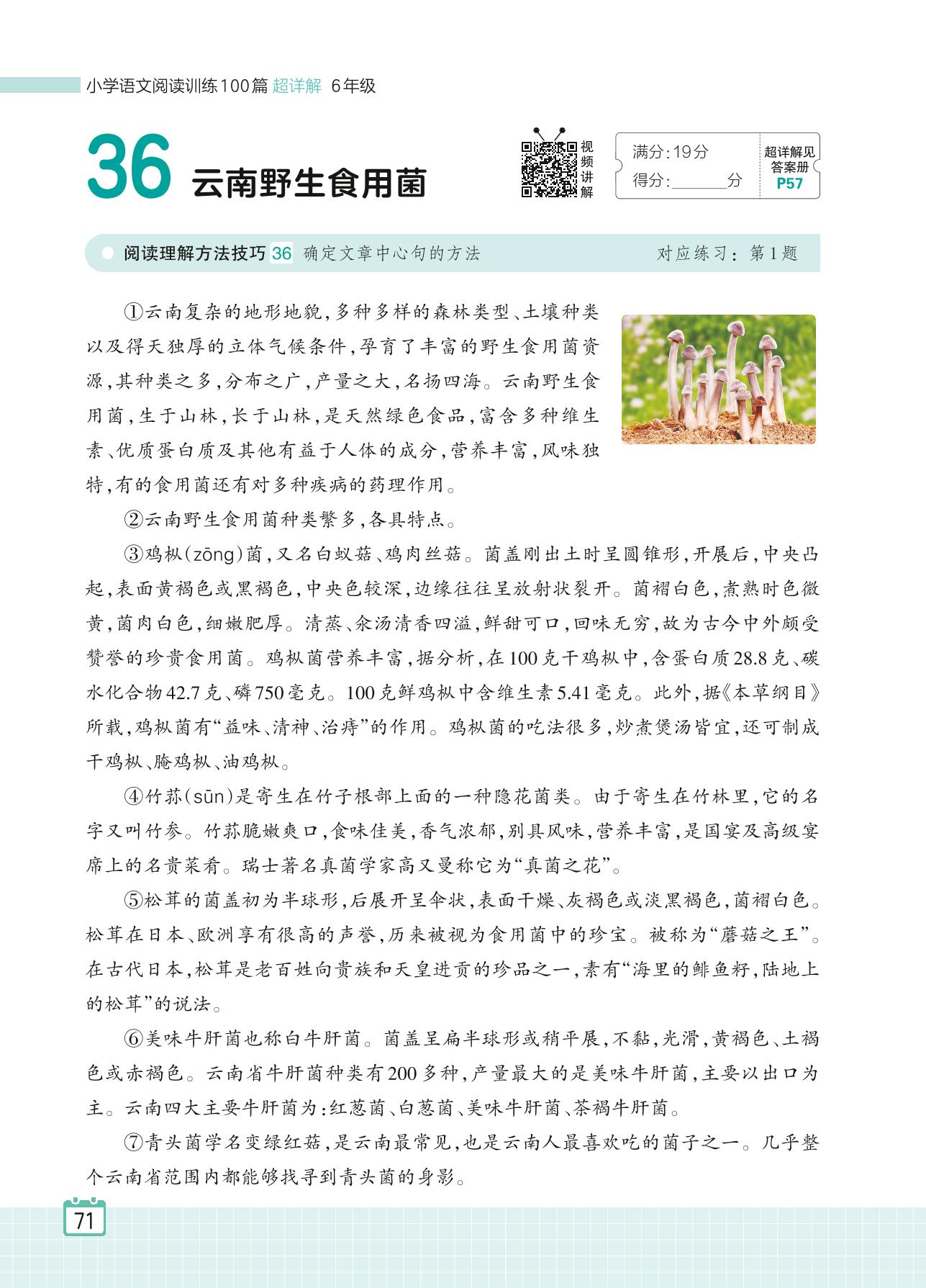 2024全一册六年级语文人教版 专题三 写景状物 36 云南野生食用菌