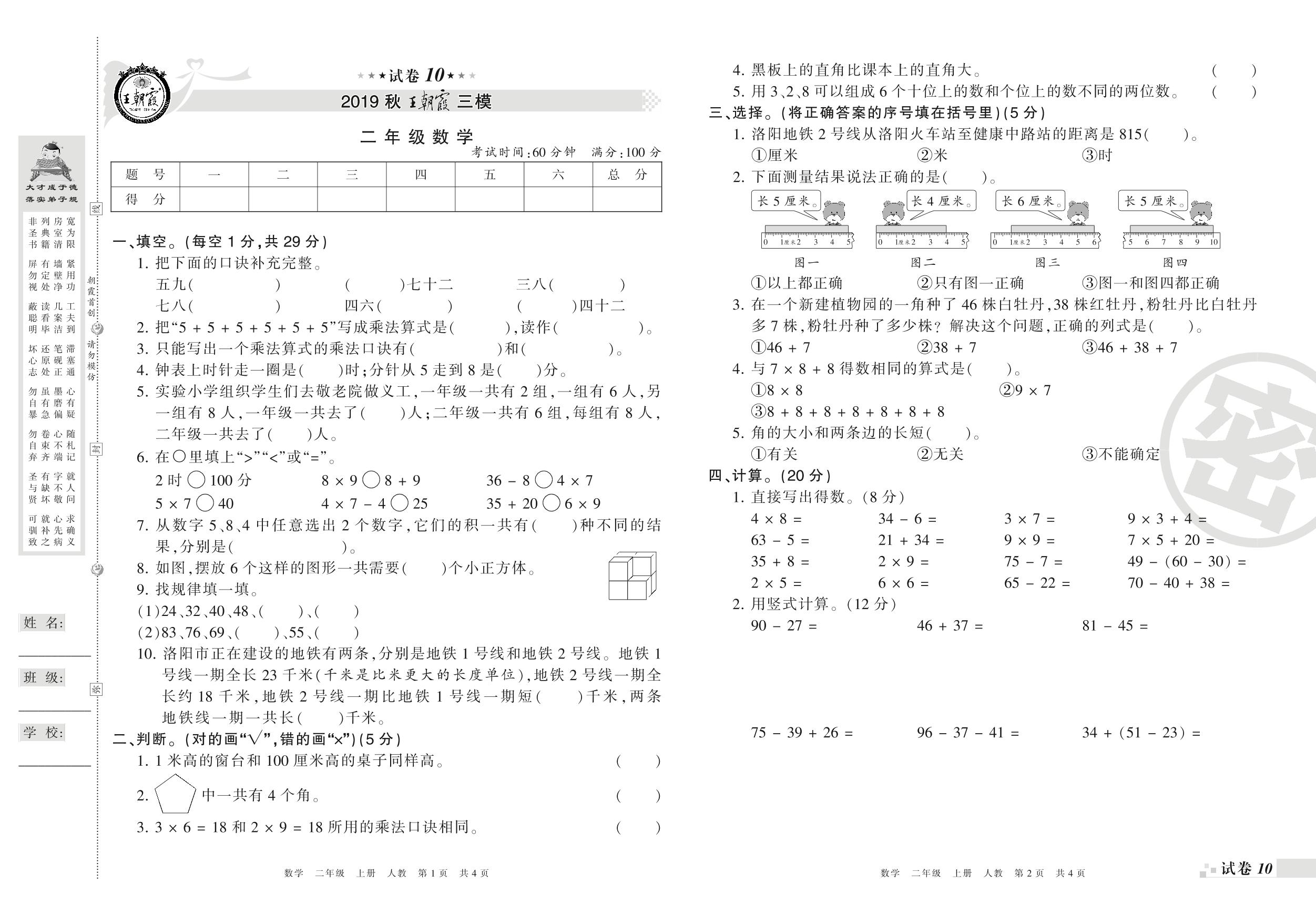 王朝霞期末模拟卷二年级上册数学(人教版)_R21080394201【10】