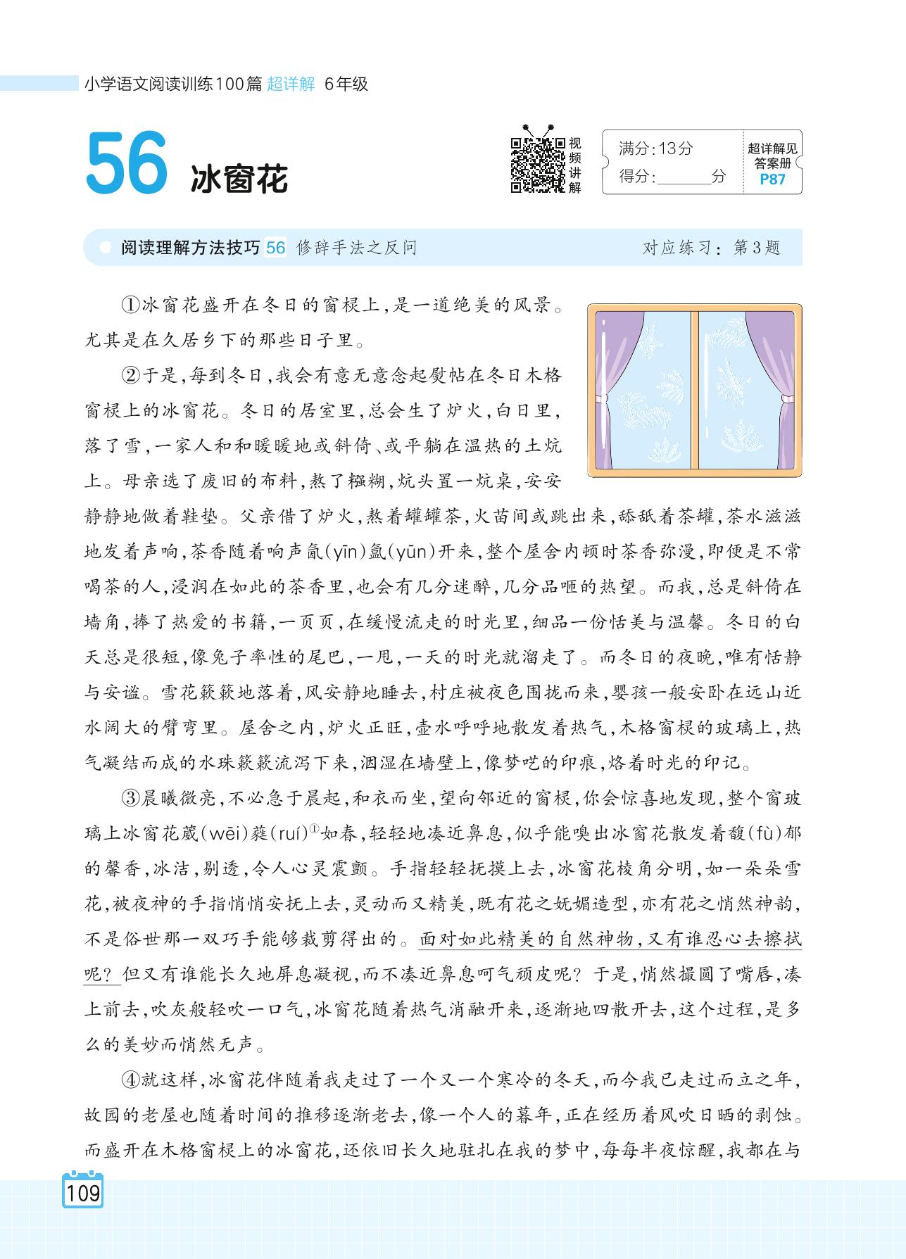2024全一册六年级语文人教版 专题五 散文 56 冰窗花