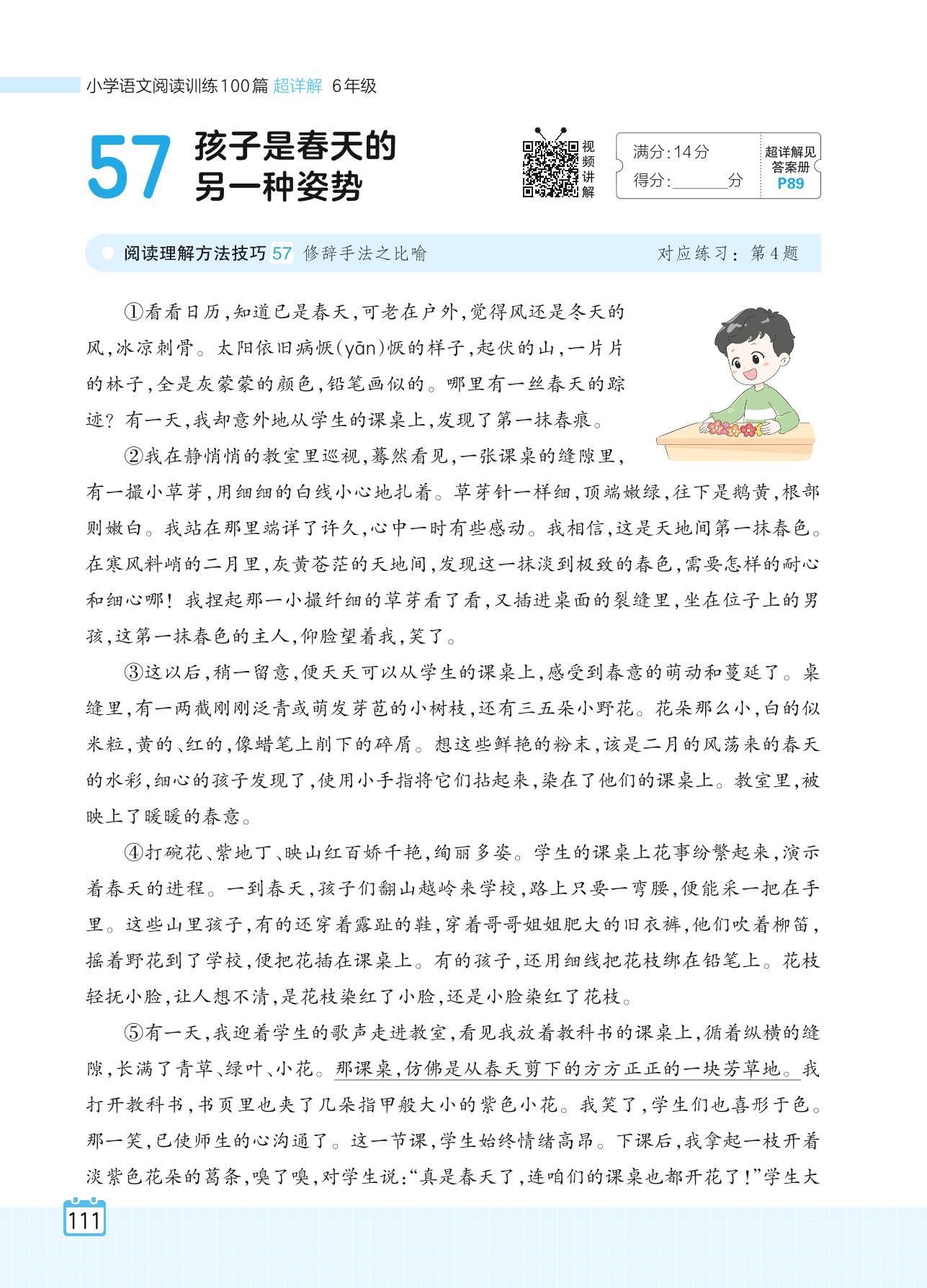 2024全一册六年级语文人教版 专题五 散文 57 孩子是春天的另一种姿势