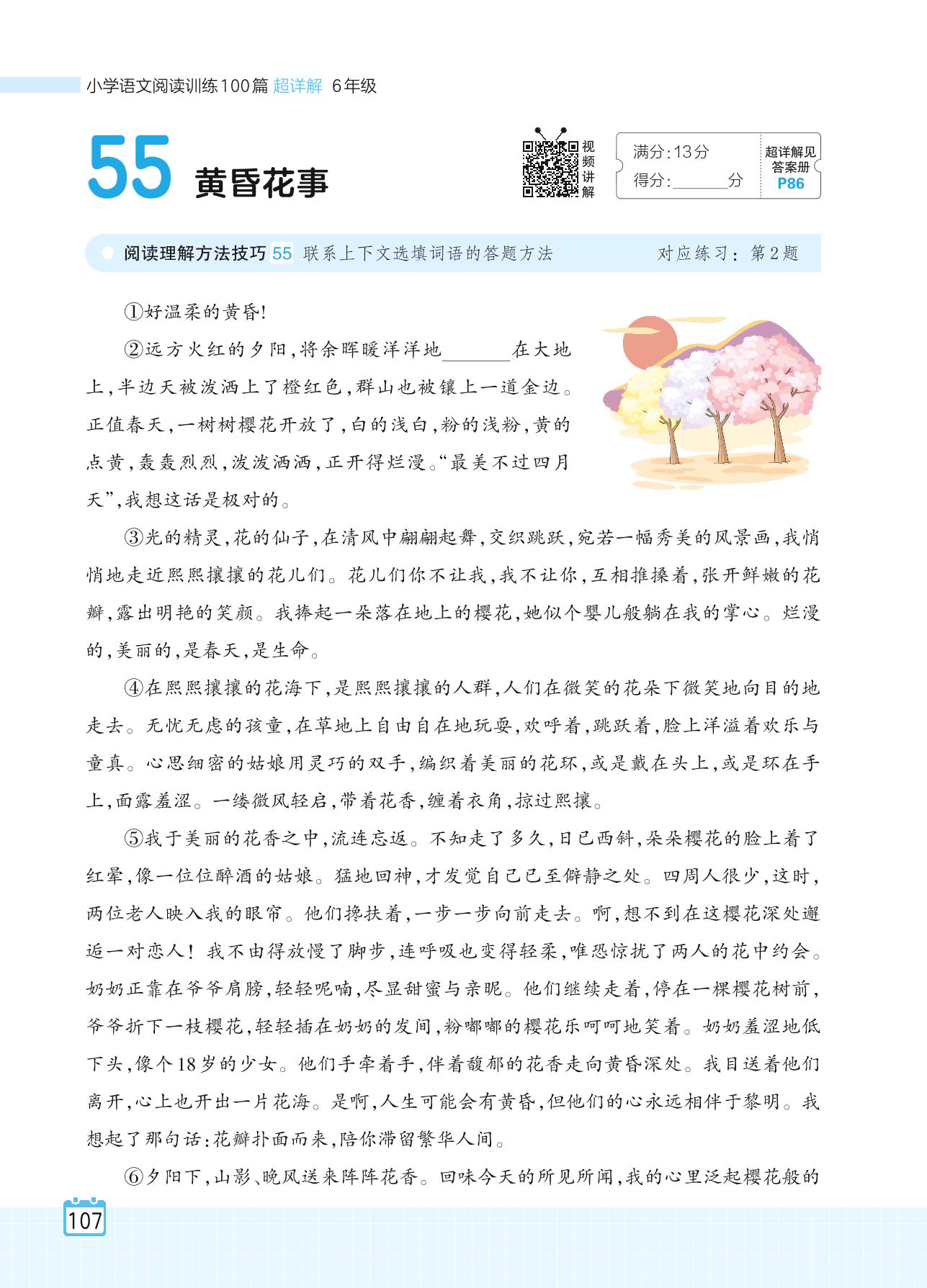 2024全一册六年级语文人教版 专题五 散文 55 黄昏花事