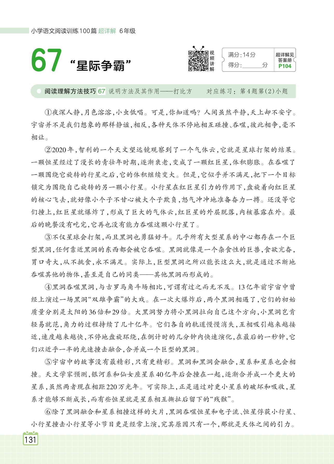 2024全一册六年级语文人教版 专题六 说明文 67 “星际争霸”