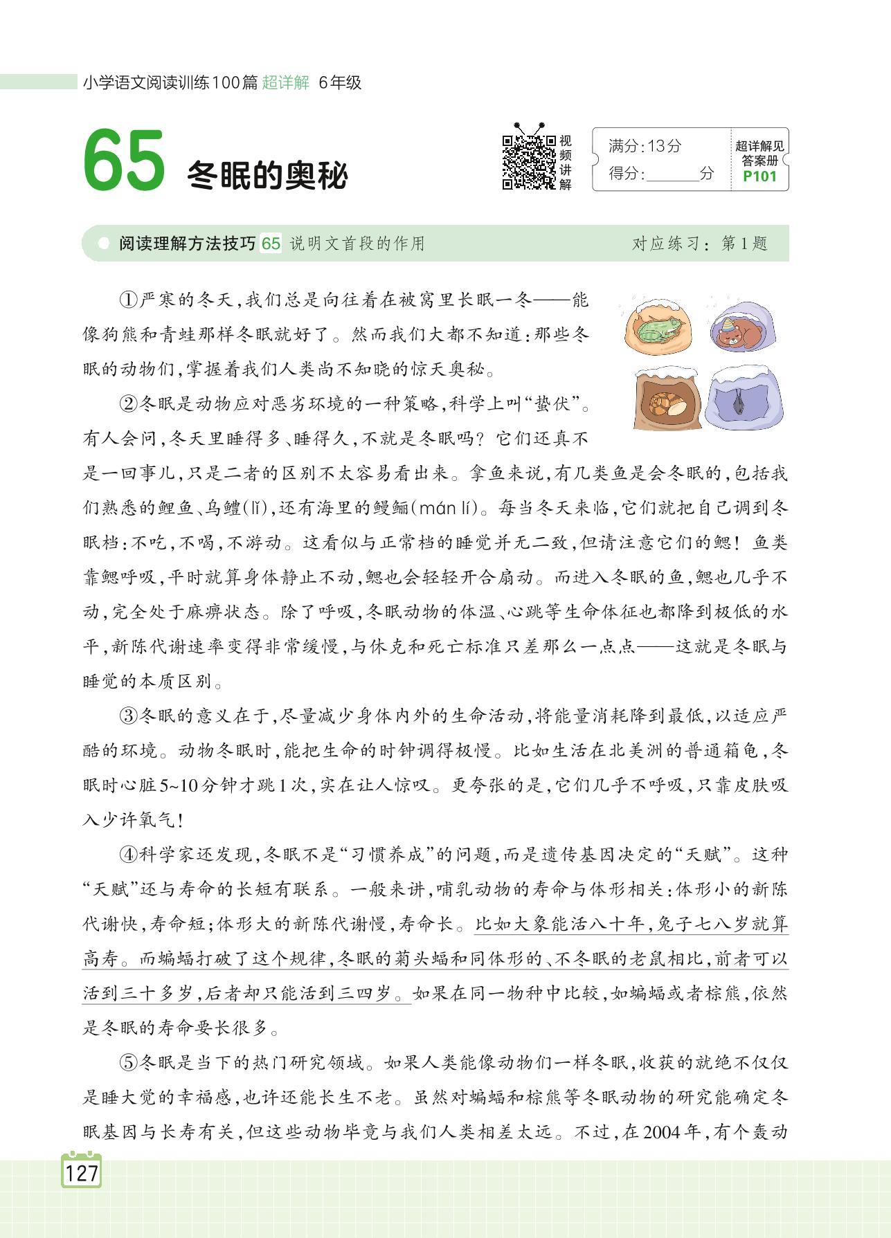 2024全一册六年级语文人教版 专题六 说明文 65 冬眠的奥秘