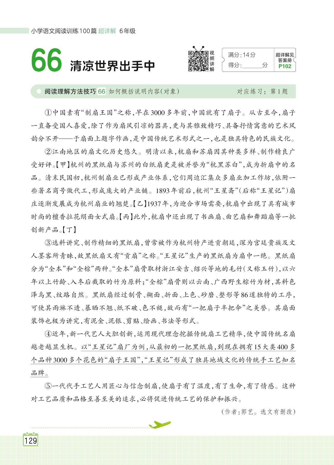 2024全一册六年级语文人教版 专题六 说明文 66 清凉世界出手中