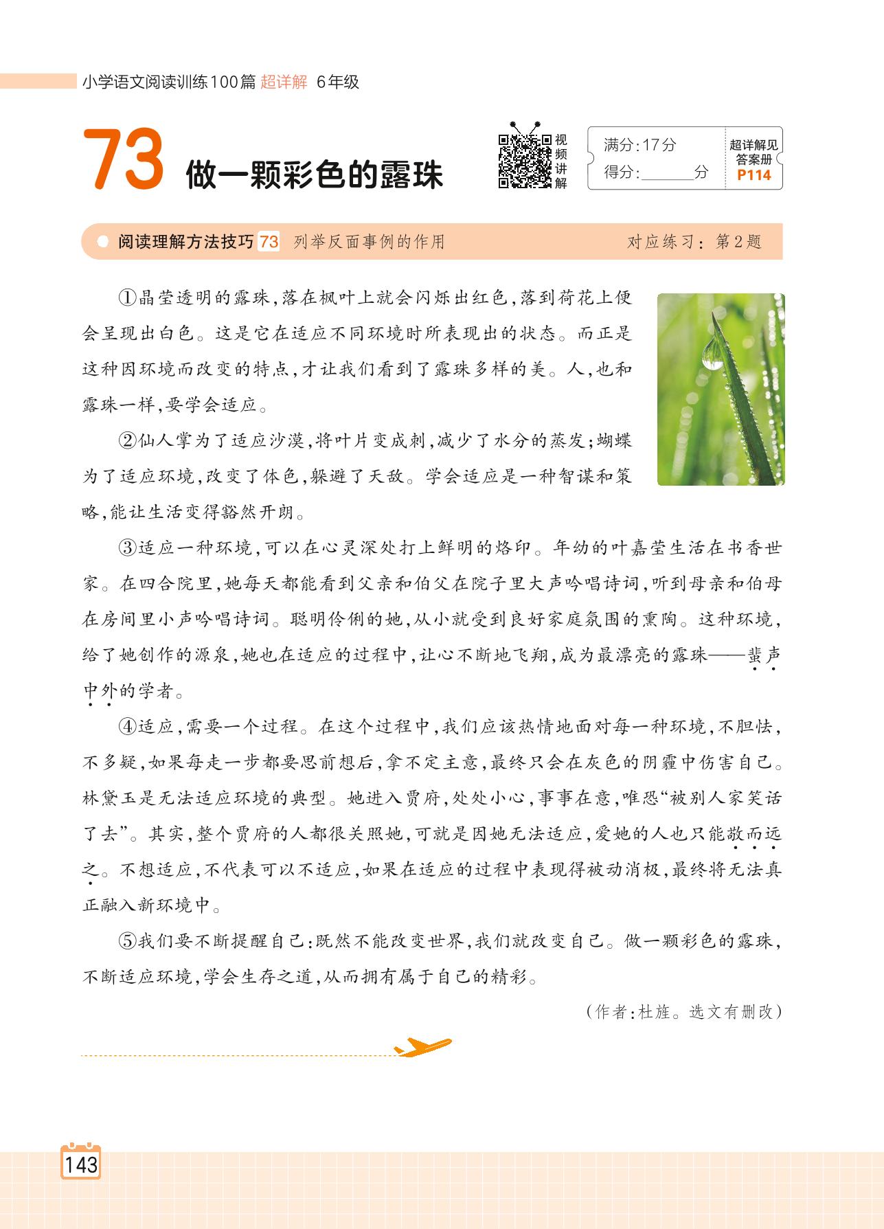 2024全一册六年级语文人教版 专题七 议论文 73 做一颗彩色的露珠