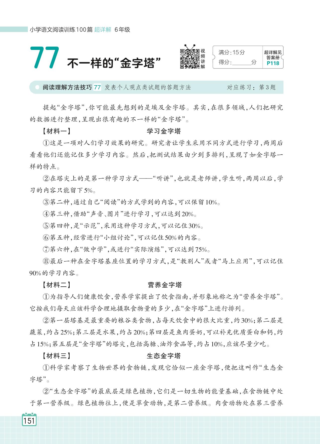 2024全一册六年级语文人教版 专题八 非连续性文本阅读 77 不一样的“金字塔”