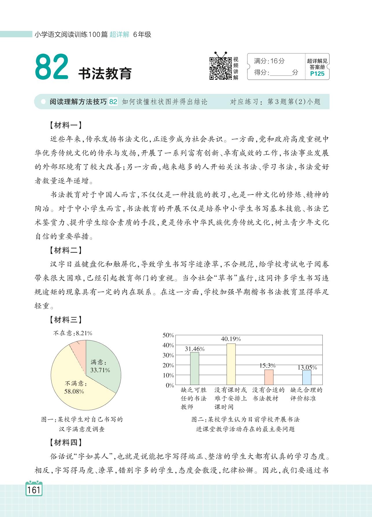 2024全一册六年级语文人教版 专题八 非连续性文本阅读 82 书法教育