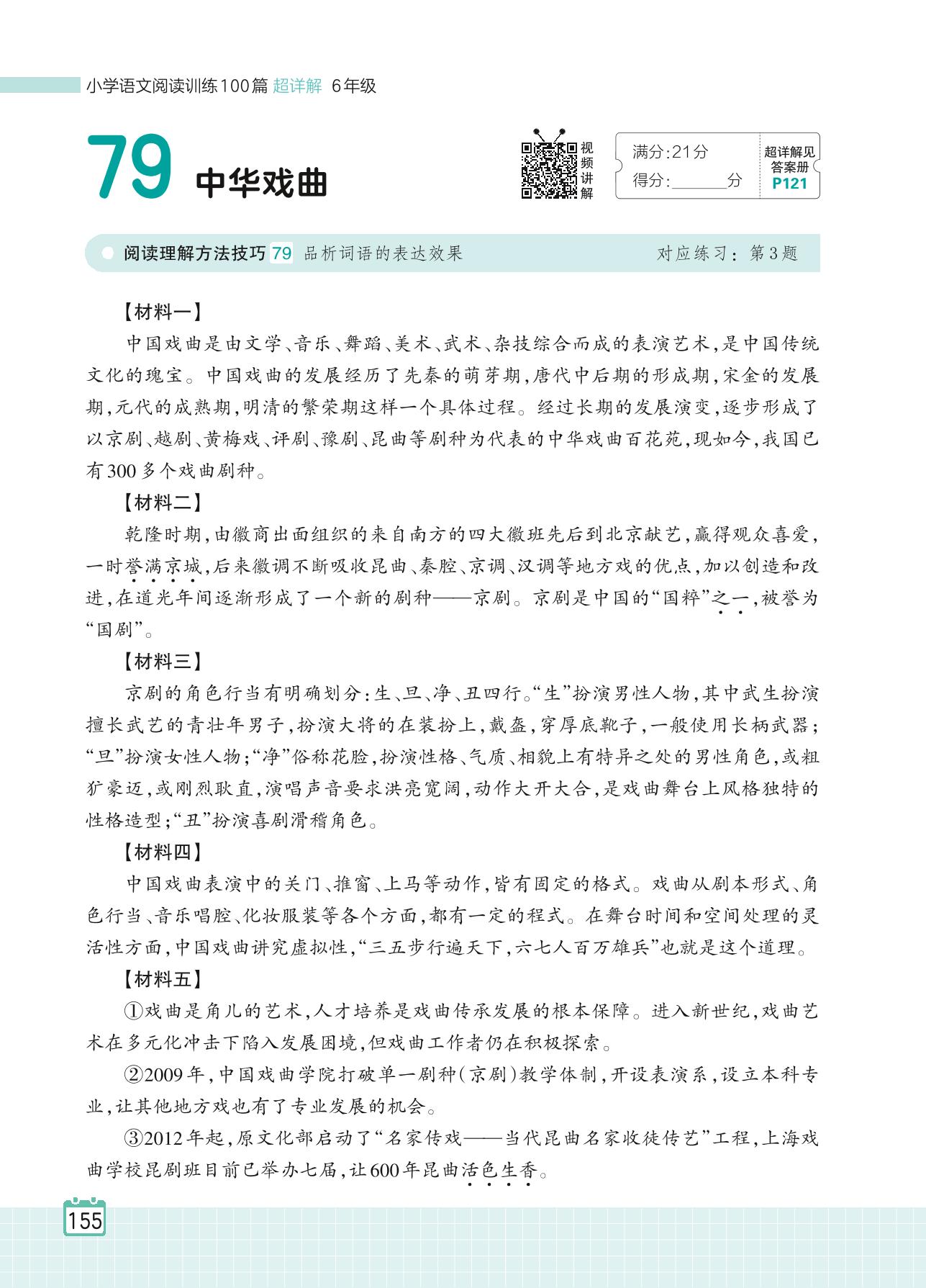 2024全一册六年级语文人教版 专题八 非连续性文本阅读 79 中华戏曲