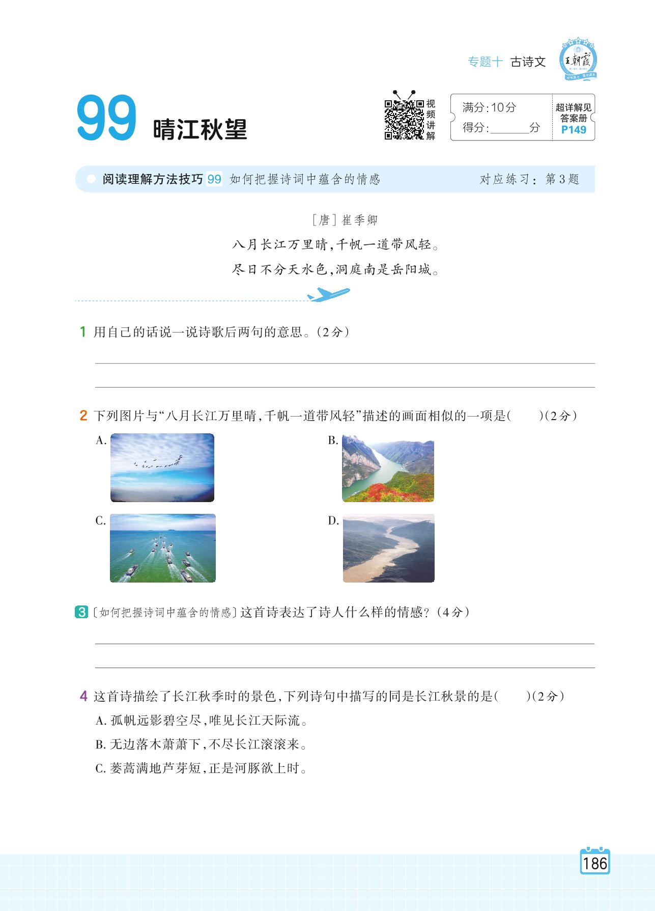 2024全一册六年级语文人教版 专题十 古诗文 99 晴江秋望