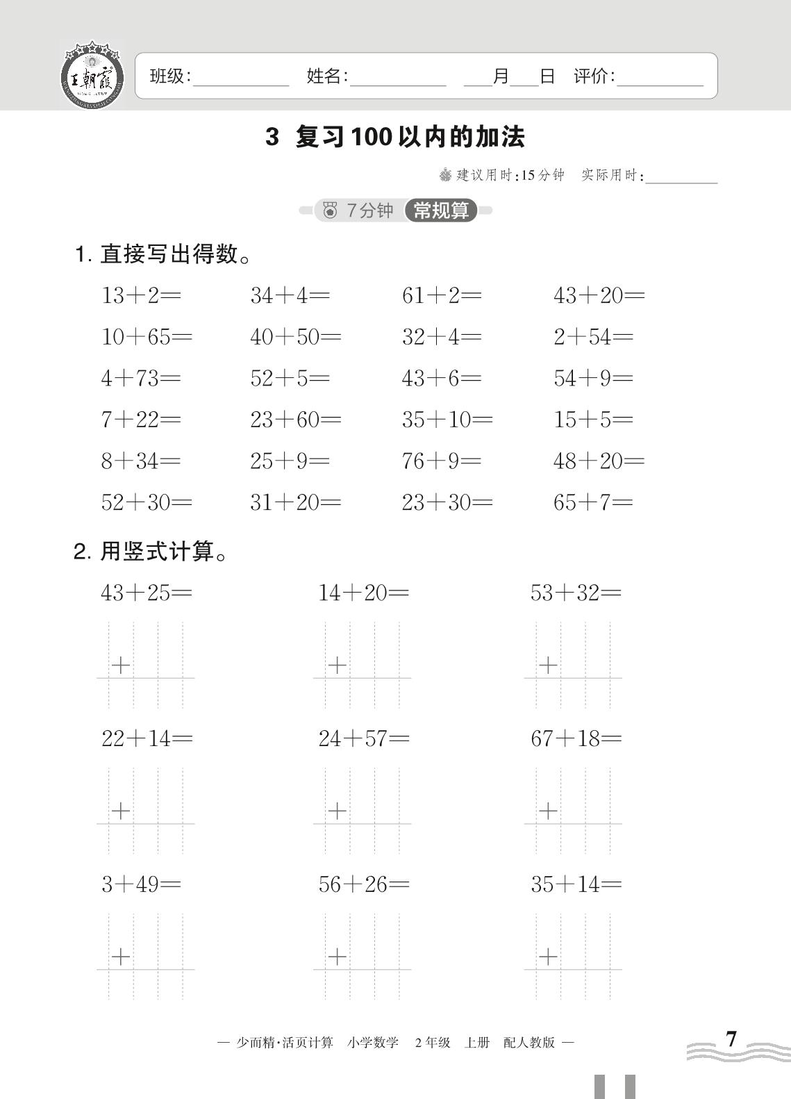 2023上册二年级数学人教版 二 100以内的加法和减法(二)——3 复习100以内的加法