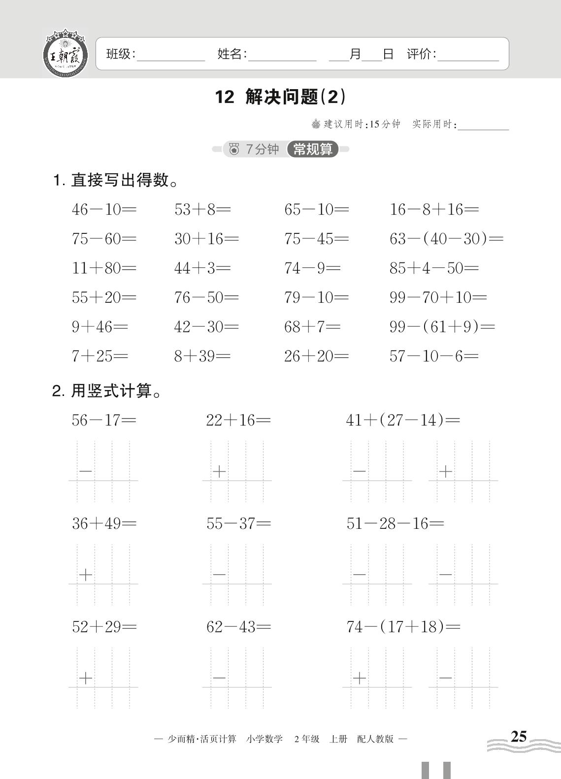 2023上册二年级数学人教版 二 100以内的加法和减法(二)——12 解决问题(2)