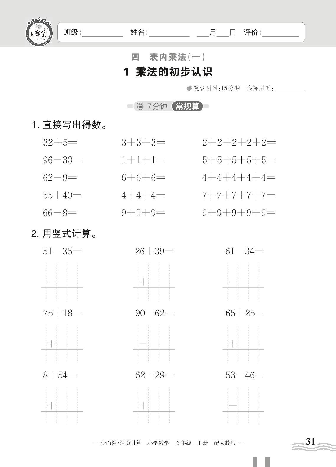 2023上册二年级数学人教版 四 表内乘法(一)——1 乘法的初步认识