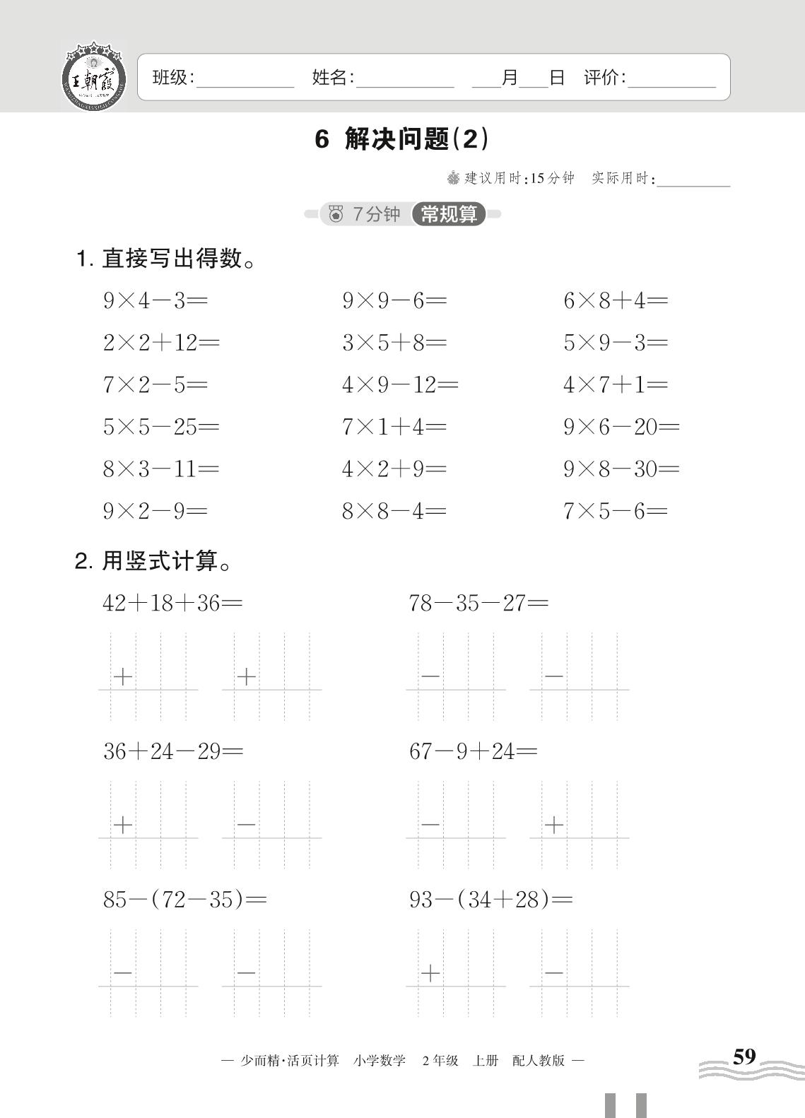 2023上册二年级数学人教版 六 表内乘法(二)——6 解决问题(2)