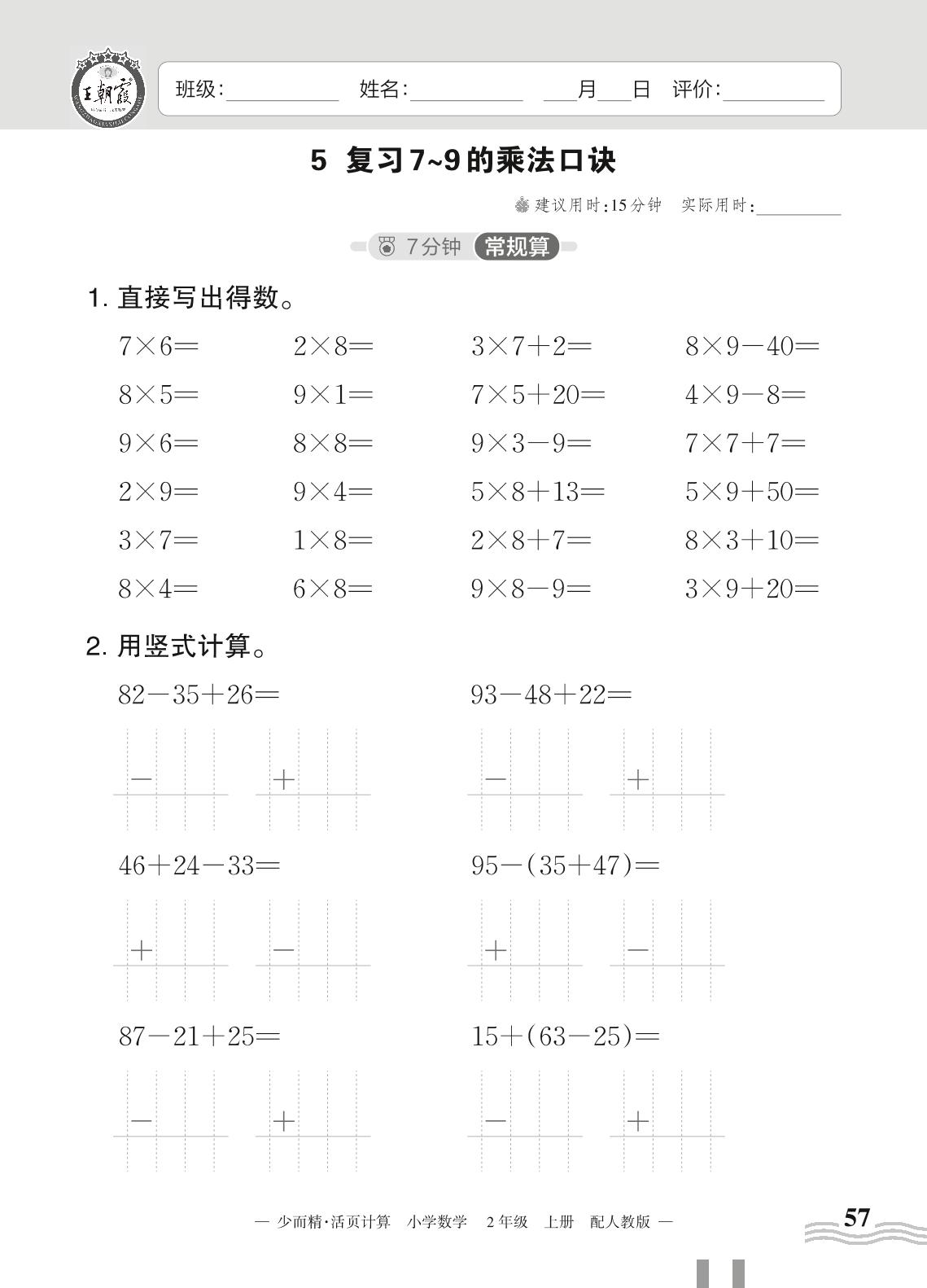 2023上册二年级数学人教版 六 表内乘法(二)——5 复习7~9的乘法口诀