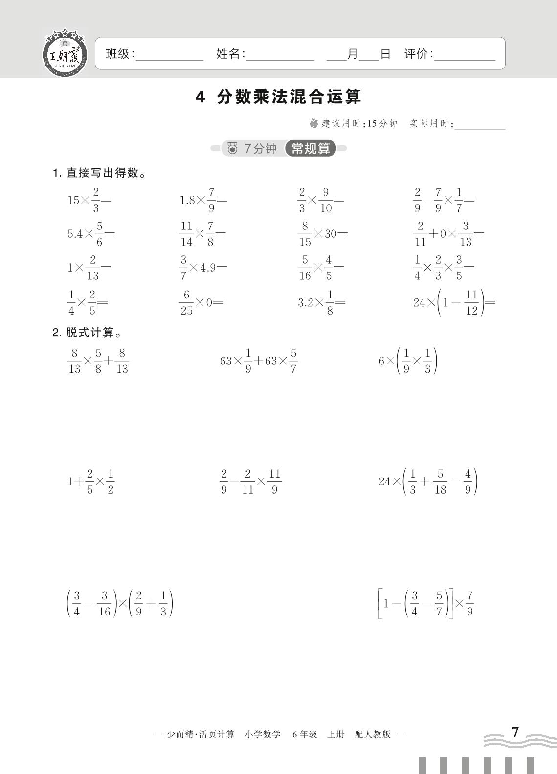 2023上册六年级数学人教版 一 分数乘法——4 分数乘法混合运算
