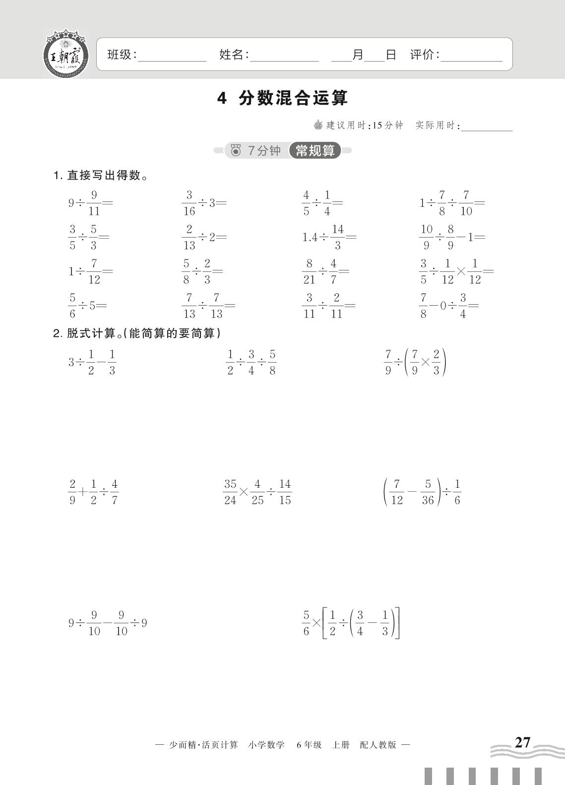 2023上册六年级数学人教版 三 分数除法——4 分数混合运算