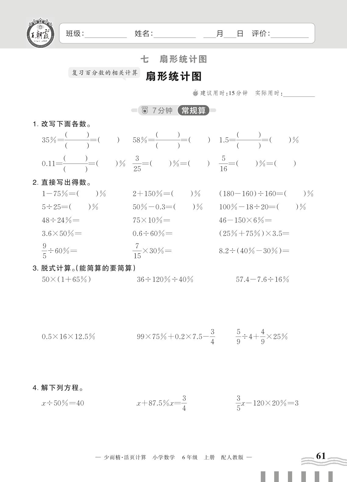 2023上册六年级数学人教版 七 扇形统计图——扇形统计图