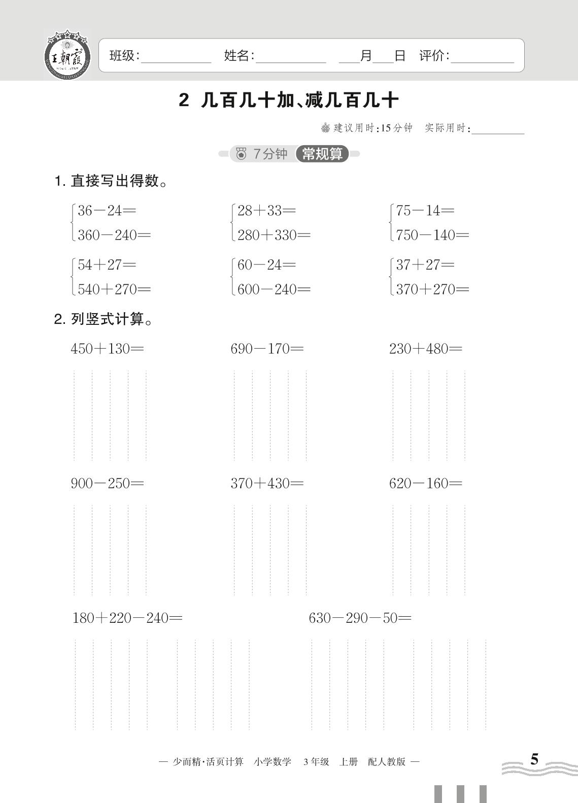 2023上册三年级数学人教版 二 万以内的加法和减法(一)——2 几百几十加、减几百几十