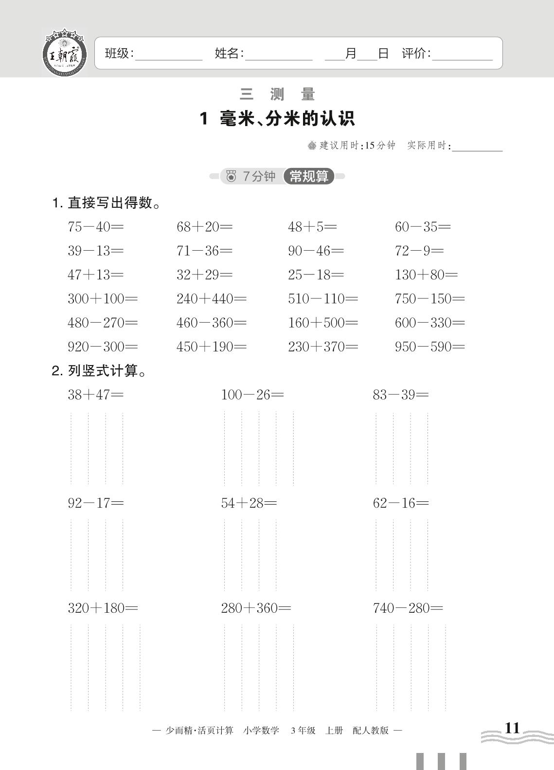 2023上册三年级数学人教版 三 测量——1 毫米、分米的认识