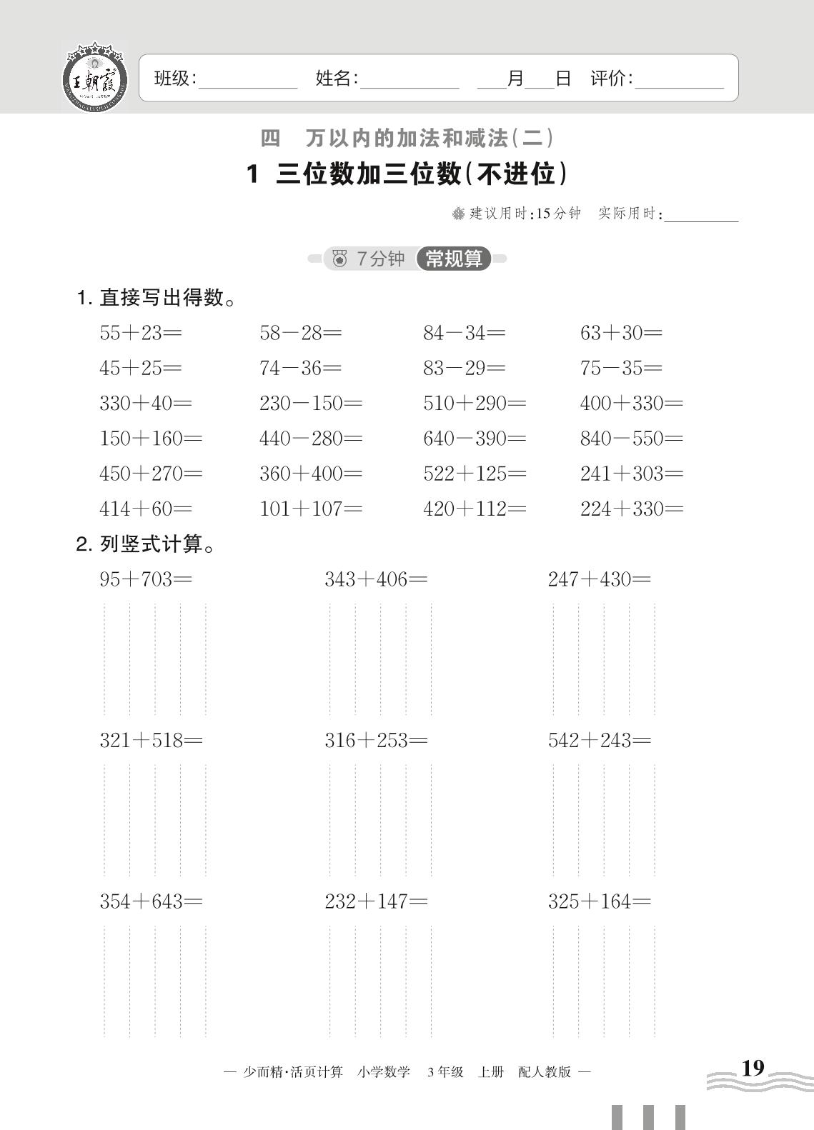 2023上册三年级数学人教版 四 万以内的加法和减法(二)——1 三位数加三位数(不进位)