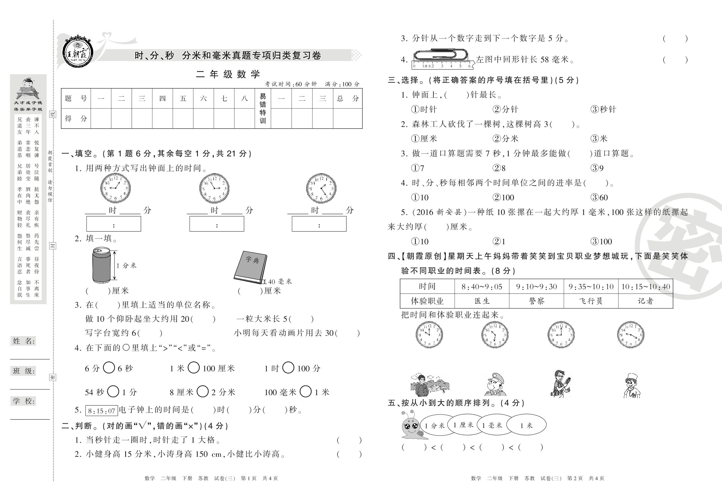 王朝霞期末专项卷二年级下册数学(苏教版)_R21080394309【3】